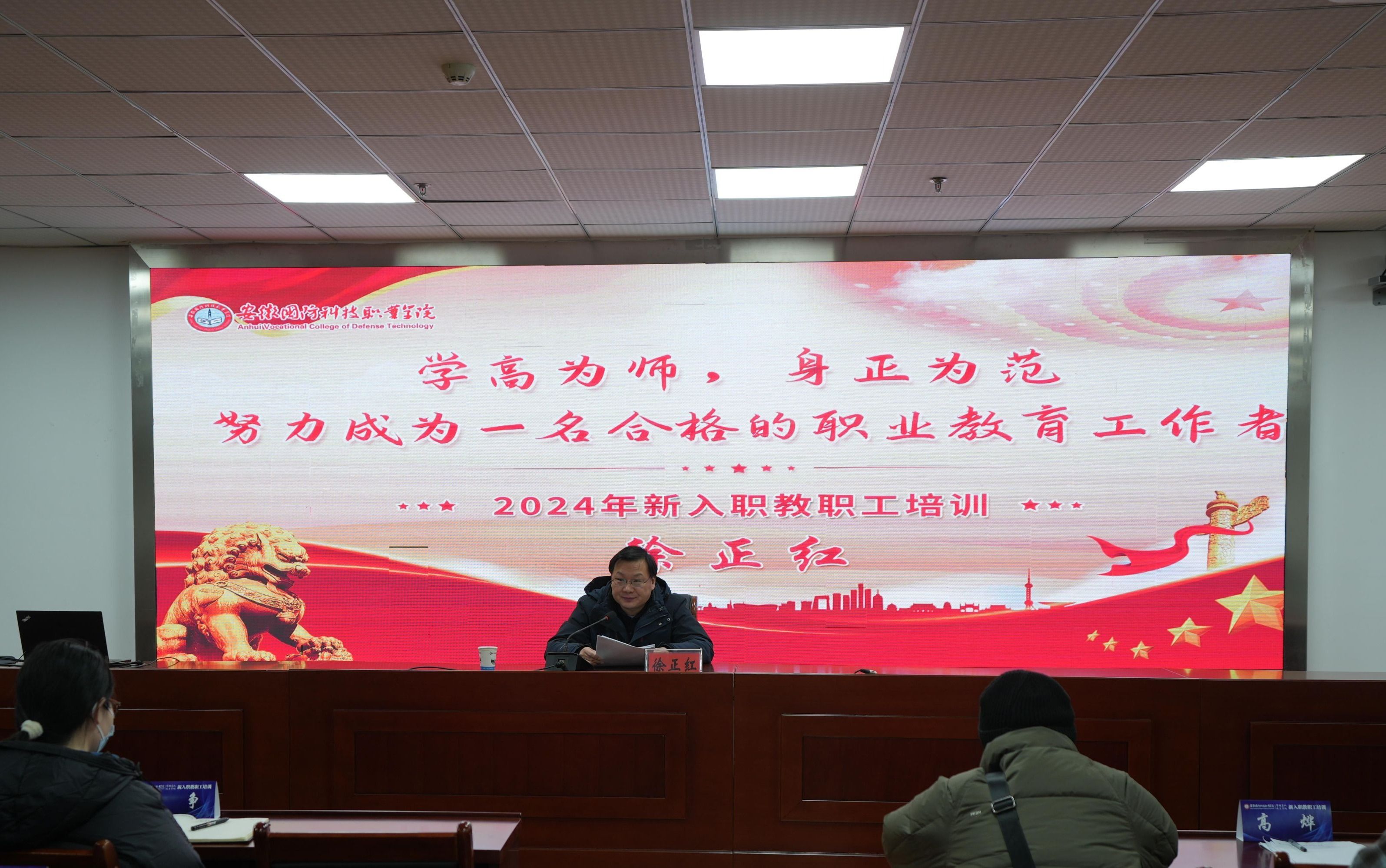 校党委副书记、校长徐正红以“学高为师,身正为范—努力成为一名合格的职业教育工作者”为主题作开班第一讲。他从“怎样看教育”、“怎样看职业教育”、“努力成为新时代职业教育良师”三个方面带领新进职工深入学习了教育的重要性、教育强国建设的理论基础和实践框架、推进教育强国建设具体做法,职业教育发展历程、重要地位和作用及其发展方向。他强调每位教师要时刻保持对教师职业的敬畏之心,注重涵养高尚师德师风,将教育家精神融入教育教学全过程,不断提升自身的专业素养,并密切关注产业发展新趋势新动态,确保教学内容与企业实际需求紧密结合。
