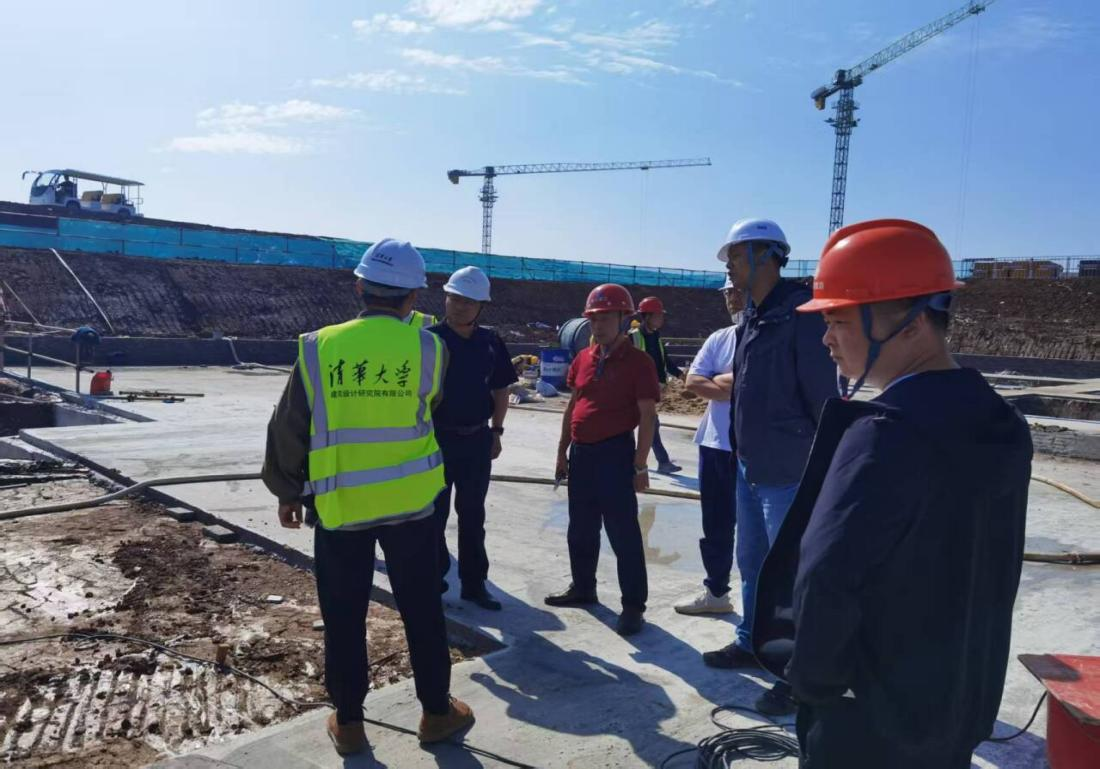 (左二:市重点处陈霜枫 左三:项目经理王辉 右二:校方现场管理组长 张伟业)