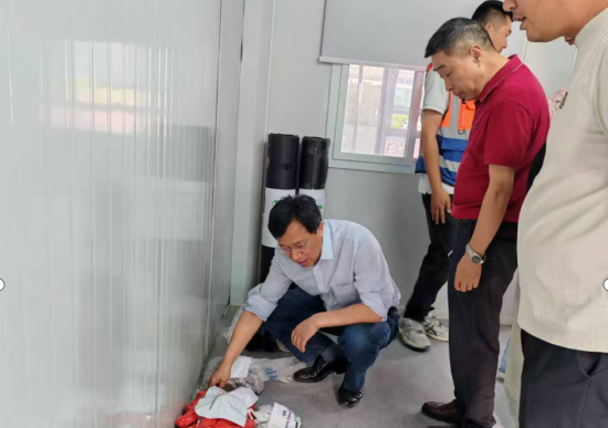 与会同志实地检查部分建筑材料封样(左一:袁旗)