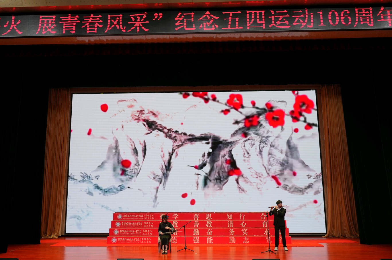 本网讯(团委 罗丞筠)为纪念五四运动106周年,进一步弘扬“爱国、进步、民主、科学”的五四精神,激发青年爱国情怀,丰富学生的校园文化生活。5月14日,万象城官网“传五四薪火 展青春风采”——纪念五四运动106周年文艺展演成功举办。校党委委员、宣传部长、校团委书记陈思,党委学生工作部部长孙武,公共课教学部主任陈功立,各二级学院党政领导出席活动,500余名师生现场观看。