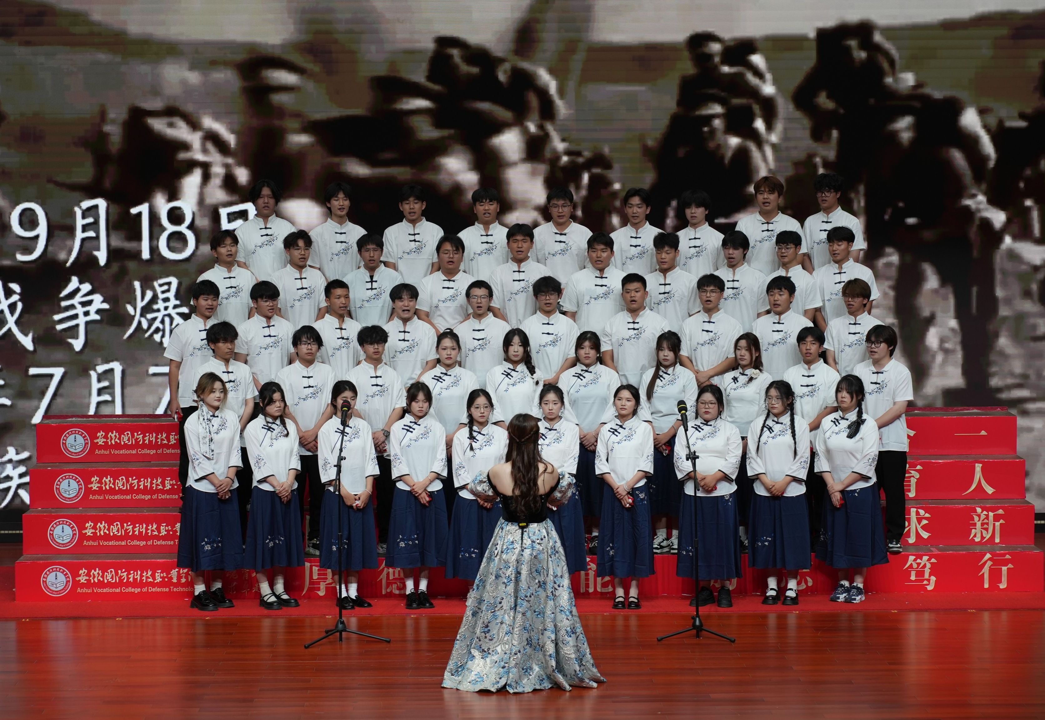 传统文化与现代艺术交相辉映。民乐合奏《牵丝戏》以二胡、笛子等传统乐器演绎婉转悠扬的旋律,展现了中华文化的独特魅力;国旗护卫队以军旅歌曲《当那一天来临》震撼全场,整齐的队列与嘹亮的歌声彰显了国防学子的热血豪情;汽车技术学院带来的经典合唱《黄河大合唱》气势磅礴,再现中华民族不屈的抗争精神,将现场气氛推向高潮。