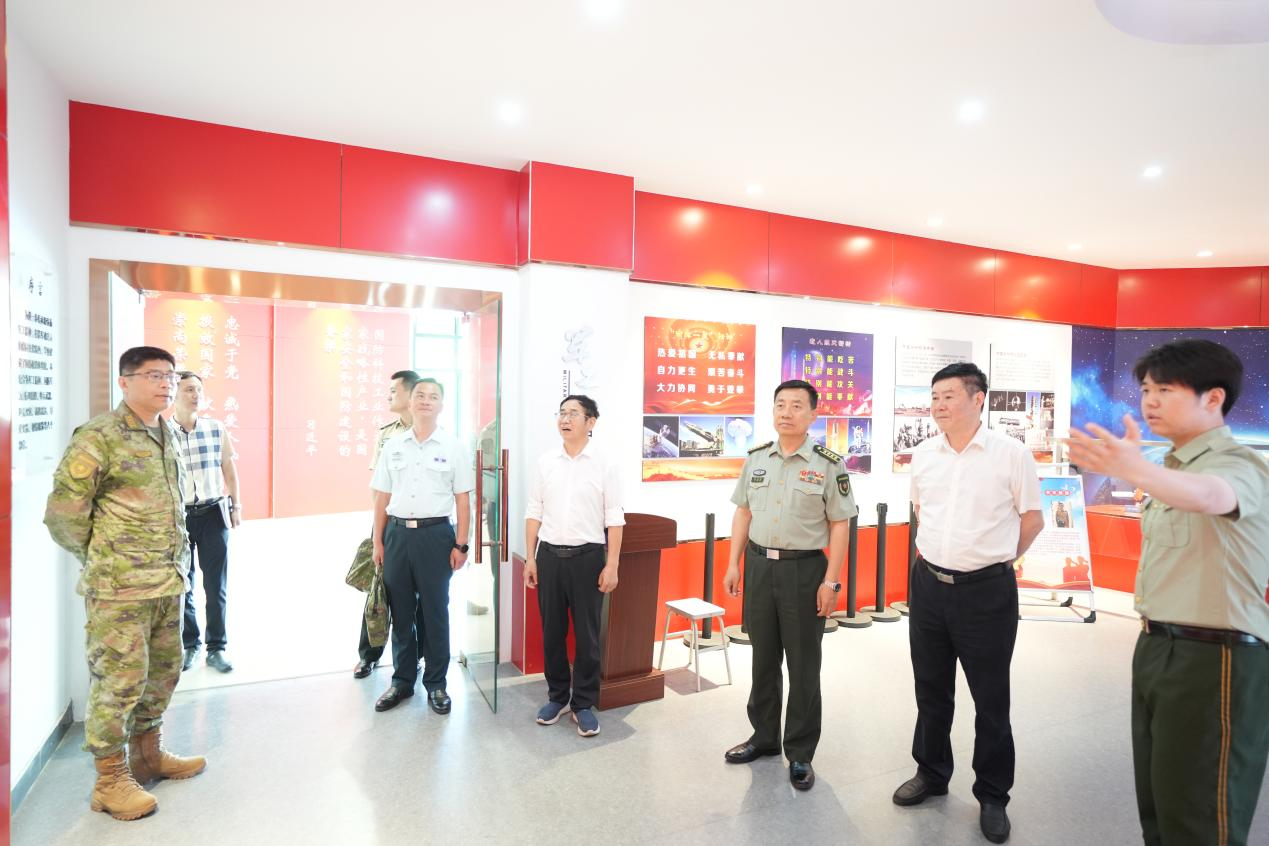 调研组一行在余嗣元的陪同下实地查看了学校“两站两服务”平台建设情况,参观了国防体验馆和户外大型军械展品等校园国防特色文化。实地参观后召开了座谈会。