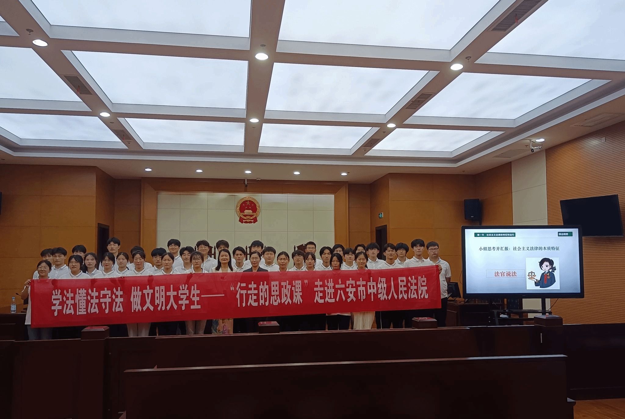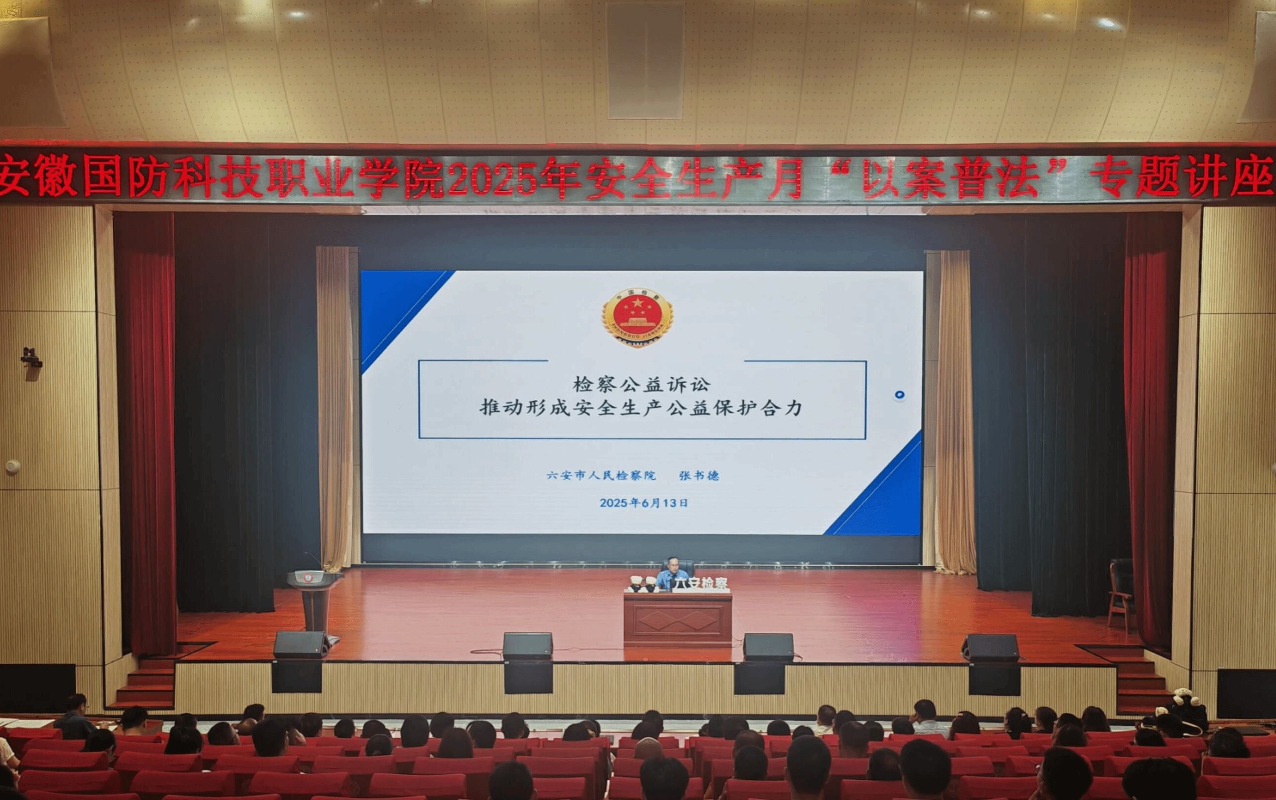 深化校地协同,拓展实践教育,增强普法实际效果。学校积极加强与地方法院、检察院、公安机关的合作,与六安市中级人民法院、金安区人民检察院等单位共建法治实践教育基地2个,联合开展“普法进校园”活动4次,邀请公安、司法、检察机关专家来校举办“以案释法”专题讲座20余场。学校还主动协同网信、国安部门和辖区派出所,发挥校园警务室作用,定期开展法治安全教育,在防范电信诈骗、抵制不良宗教渗透、维护国家安全等方面取得扎实成效。