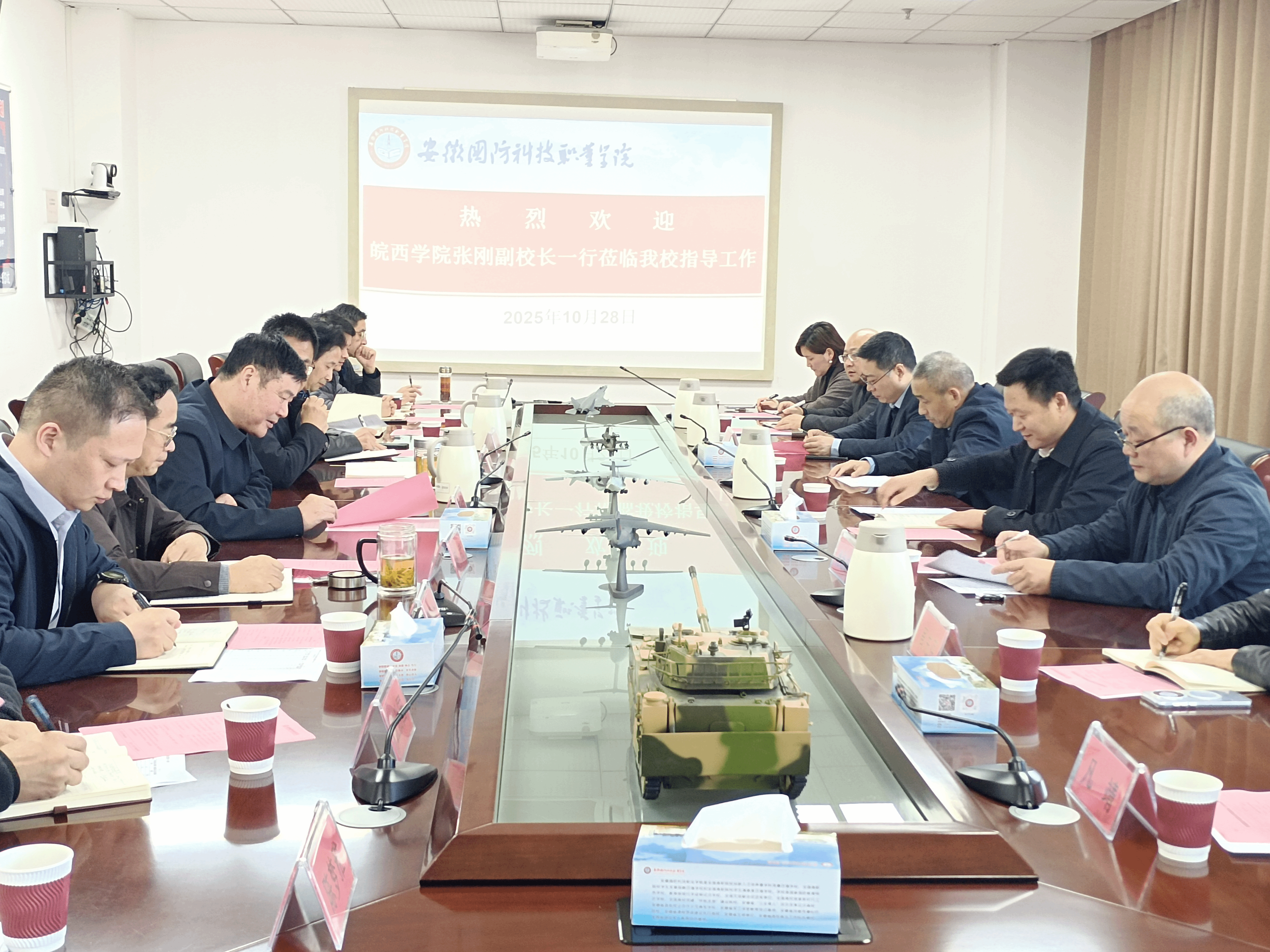 本网讯(教务处 刘流)10月28日下午,皖西学院副校长张刚携教务处、财务处、学生处、相关二级学院负责人一行就专升本联合培养工作来万象城官网座谈交流,万象城官网党委书记余嗣元主持会议。