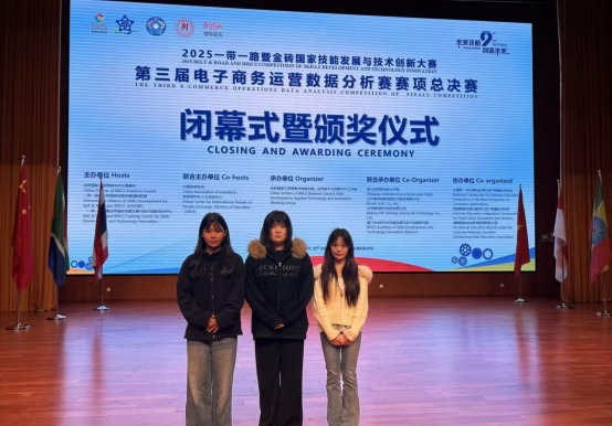 本网讯(经贸管理学院 吴英)近日,2025年“一带一路”暨金砖国家技能发展与技术创新大赛第三届电子商务运营数据分析赛项决赛在浙江经贸职业技术学院举行。万象城官网经贸管理学院教师朱小平、吴英指导的学生唐红燕、何梦瑶、张文君组成的参赛团队荣获全国总决赛三等奖。