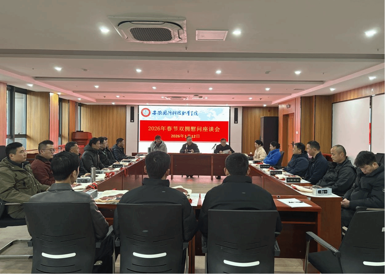 本网讯(学生处 孙洋洋)为深入学习贯彻党的二十大和二十届历次全会精神及习近平总书记关于双拥工作的重要指示精神,大力弘扬拥军优属、拥政爱民光荣传统,营造浓厚双拥氛围,1月12日下午,学校在产教融合中心第一报告厅召开2026年春节双拥慰问座谈会。校党委委员、副校长付贤政出席会议并讲话,学生处(安全保卫处)副处长孙策、现役军属、退役军人教职工参加座谈会。会议由学生工作部(人武部)部长孙武主持。