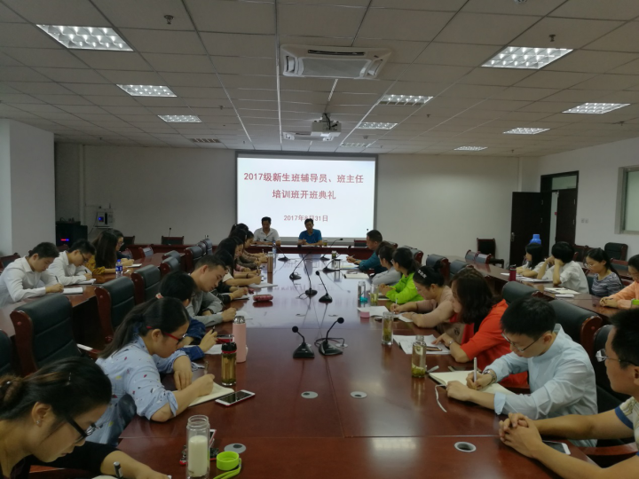 本网讯(学生处 徐婷婷)为充分发挥辅导员、班主任的作用,提高其综合素质和管理水平,8月31日- 9月1号,万象城体育awcsport学生处在教学综合楼902会议室举办了2017级新生班班主任、辅导员培训班。学校领导高度重视此次培训工作。校党委书记余嗣元亲自出席培训班工作经验交流座谈会并作重要讲话。校党委委员、宣传部部长袁旗作开班动员及结班总结讲话。学生处(安全保卫处)处长孙良平主持培训班开班、结班典礼并亲自参与主讲。学校学生处及各二级学院学生管理相关负责人,以及2017级全体新生班班主任、辅导员参加了培训。