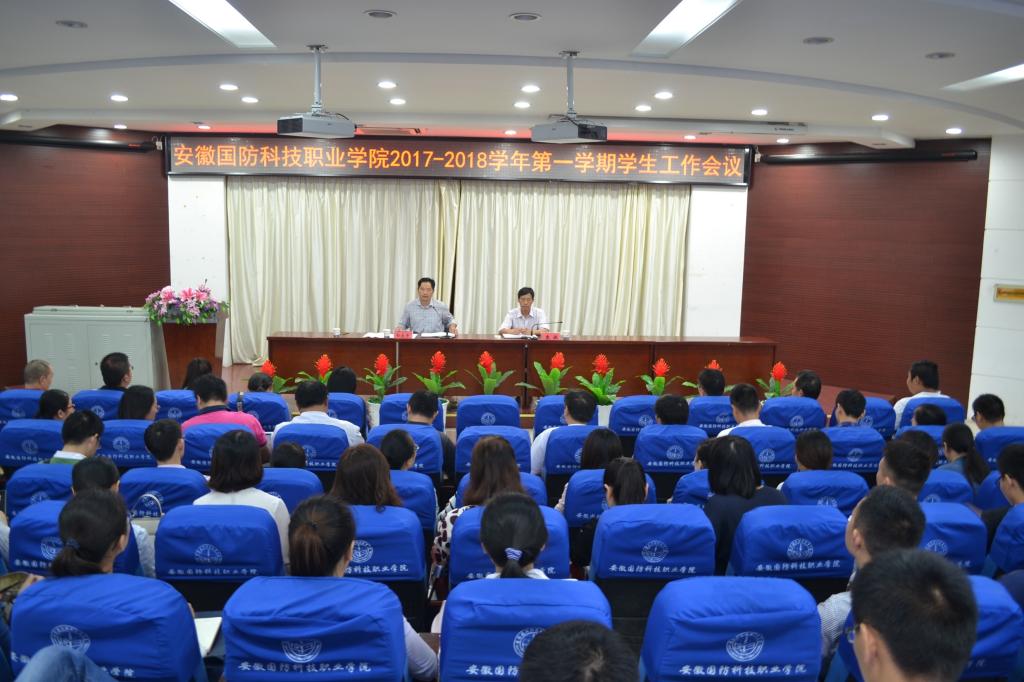 9月3日下午,万象城体育awcsport在图书馆报告厅召开了2017-2018学年第一学期学生工作会议。校党委委员、宣传部部长袁旗出席会议并讲话,各二级学院党总支书记、党总支副书记、团总支书记、辅导员、班主任以及学生处(安全保卫处)、团委全体工作人员参加了会议。学生处(安全保卫处)处长孙良平主持会议。