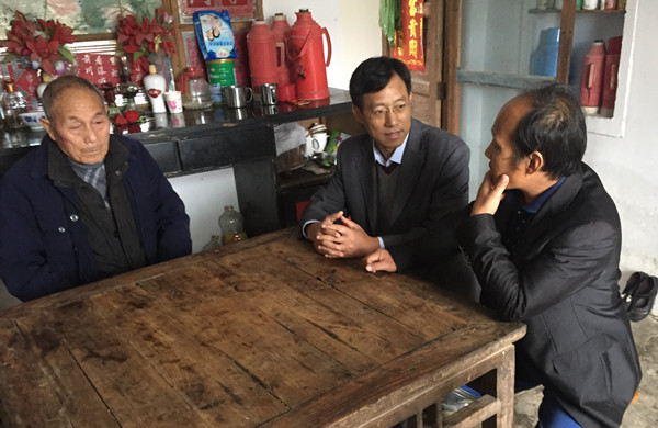 校党委书记余嗣元(中)走访贫困户