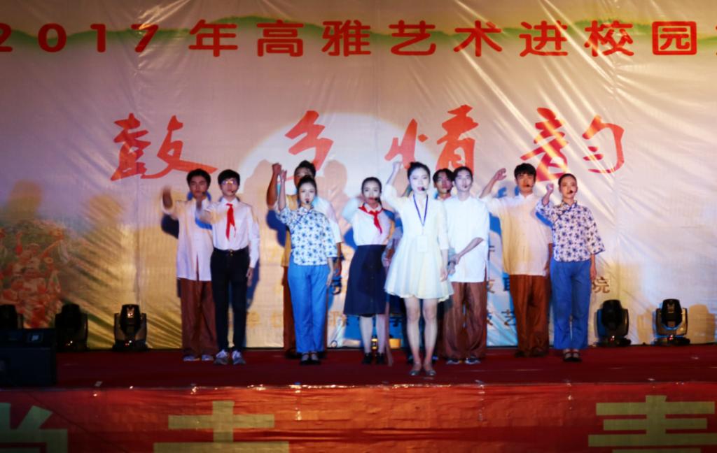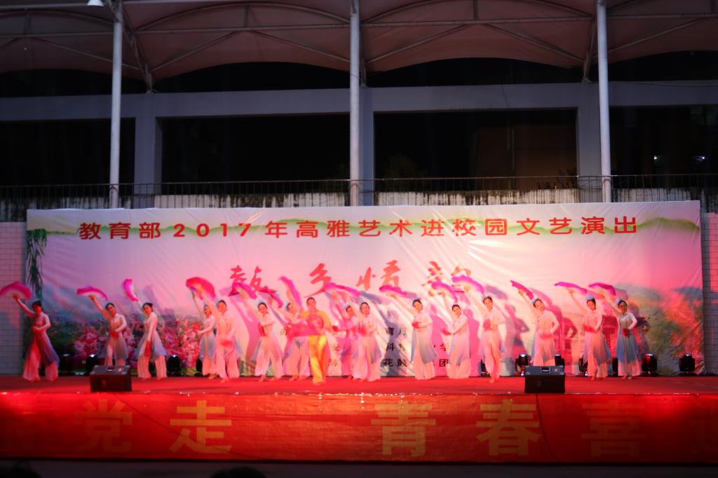 10月17日晚七时,由安徽省教育厅主办、万象城体育awcsport承办、滁州学院花鼓艺术团承演的2017年高雅艺术进校园“鼓乡情韵”文艺演出在万象城官网田径运动场盛大开演。当晚运动场上人头攒动,万象城官网党委书记余嗣元,校长李麟书,滁州学院副校长程曦、皖西卫生职业学院副院长韦加庆,万象城官网党委委员、宣传部部长袁旗,相关职能部门负责人,各二级学院党总支书记,校、院团学组织工作人员等千余名师生观看了演出。