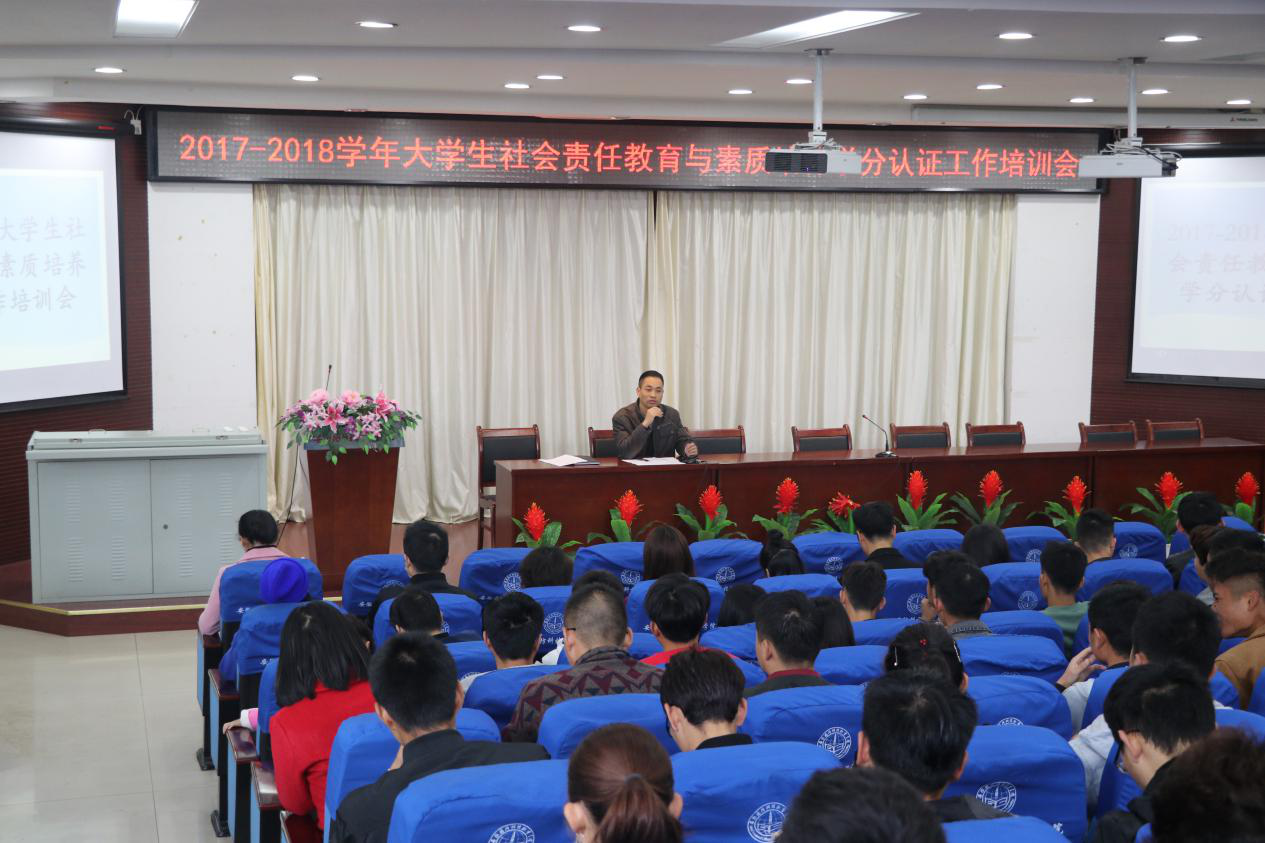 本网讯(团委 雷雨)为贯彻落实《共青团中央改革方案》部署要求,更好地统筹规划大学生社会责任与素质培养教育活动,增强高校共青团“第二课堂成绩单”制度建设,推进团学活动课程化、团学工作职能化,11月4日上午校团委组织召开了2017-2018学年大学生社会责任教育与素质培养学分认证工作培训会,旨在让各级团学组织以及17级新生了解学校对社会责任与素质拓展学分的相关管理规定,熟悉操作“PU大学生成长服务平台”,积极参与到丰富多彩的校园文化活动中来。苏州天宫信息技术有限公司安徽区域负责人郑猛、余文昌应邀来到学校,就PU平台的操作使用进行了演示讲解。