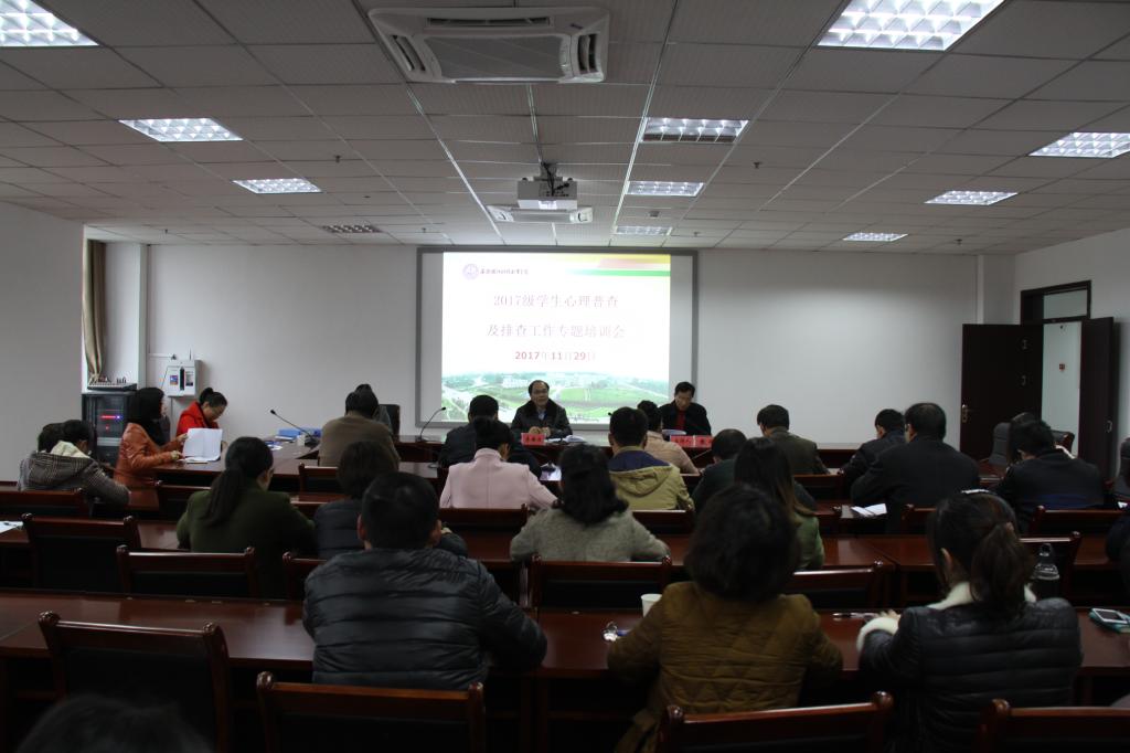本网讯(思政部 张丽)为准确掌握学生心理状况,积极做好学生心理健康教育工作,11月29日,学校召开学生心理健康教育专题培训会,就2017级学生心理普查结果处理及学生心理排查工作进行了专题培训,校长李麟书参加会议并作重要讲话。培训会由校党委委员、宣传部部长、思政部主任袁旗主持,思政部全体教师、二级学院学生管理负责人、心理辅导员、2017级班主任参加了会议。