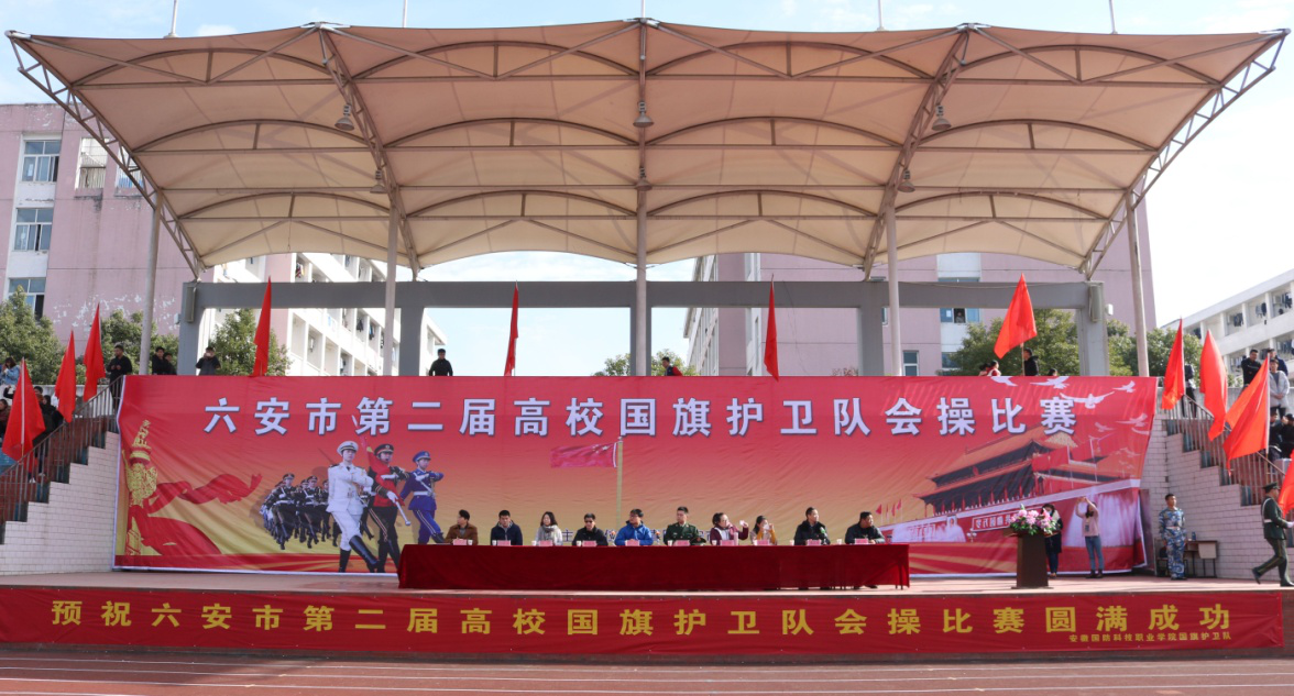 万象城体育awcsport党委副书记、纪委书记朱德明致欢迎词。共青团六安市委书记张柱发表重要讲话并强调,国旗护卫队会操比赛是我市各高校传播弘扬中华优秀传统文化、革命文化、社会主义先进文化开展的一项重要的主题鲜明、内容向上的校园文化活动。皖西各高校国旗护卫队相聚一起,举行会操比赛,既是各高校力量、团结、健康、向上的一次展示,也是青春活力的一次大检阅。希望各参赛队伍以此为契机,与时俱进,开拓创新,再次谱写新篇章。