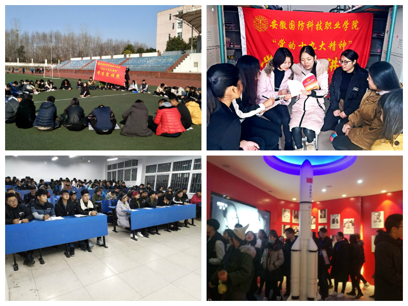 宣讲团成员在教室、寝室、国防体验馆、塑胶体育场等地点展开宣讲活动