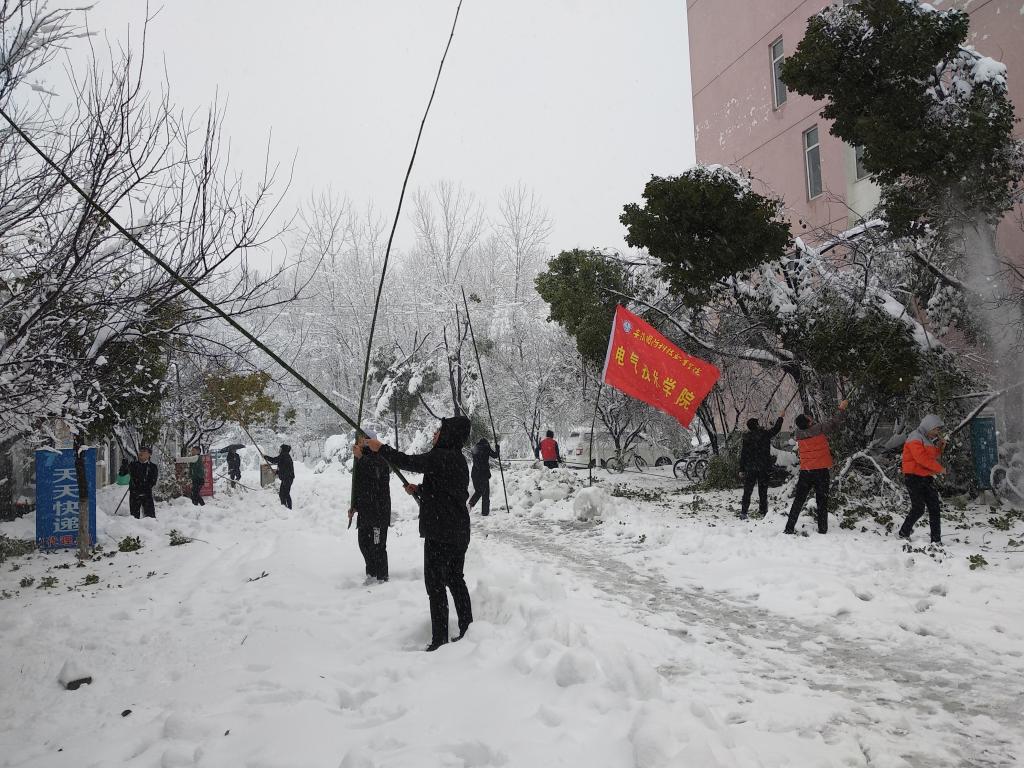 但是,持续的降雪也使校内的道路、树木被厚厚的积雪覆盖。为了消除安全隐患,确保师生的人身安全,校内各部门积极开展安全排查,投入到除雪工作中。