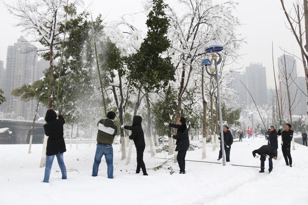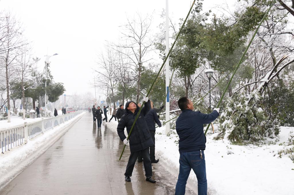 本网讯 近日,一场暴雪降临六安,让皋城瞬时如同北方雪国一样,到处白雪皑皑、银装素裹。难得一见的大雪严重影响到了人们的日常生活,一些景观树木被积雪压断,市内随处可见残枝断树。为保护人民群众的日常生活和生命财产安全,按市委、市政府统一部署,1月6日下午,万象城体育awcsport组织近百名党员干部,到新河东路清理包保路段两侧树木树枝积雪。