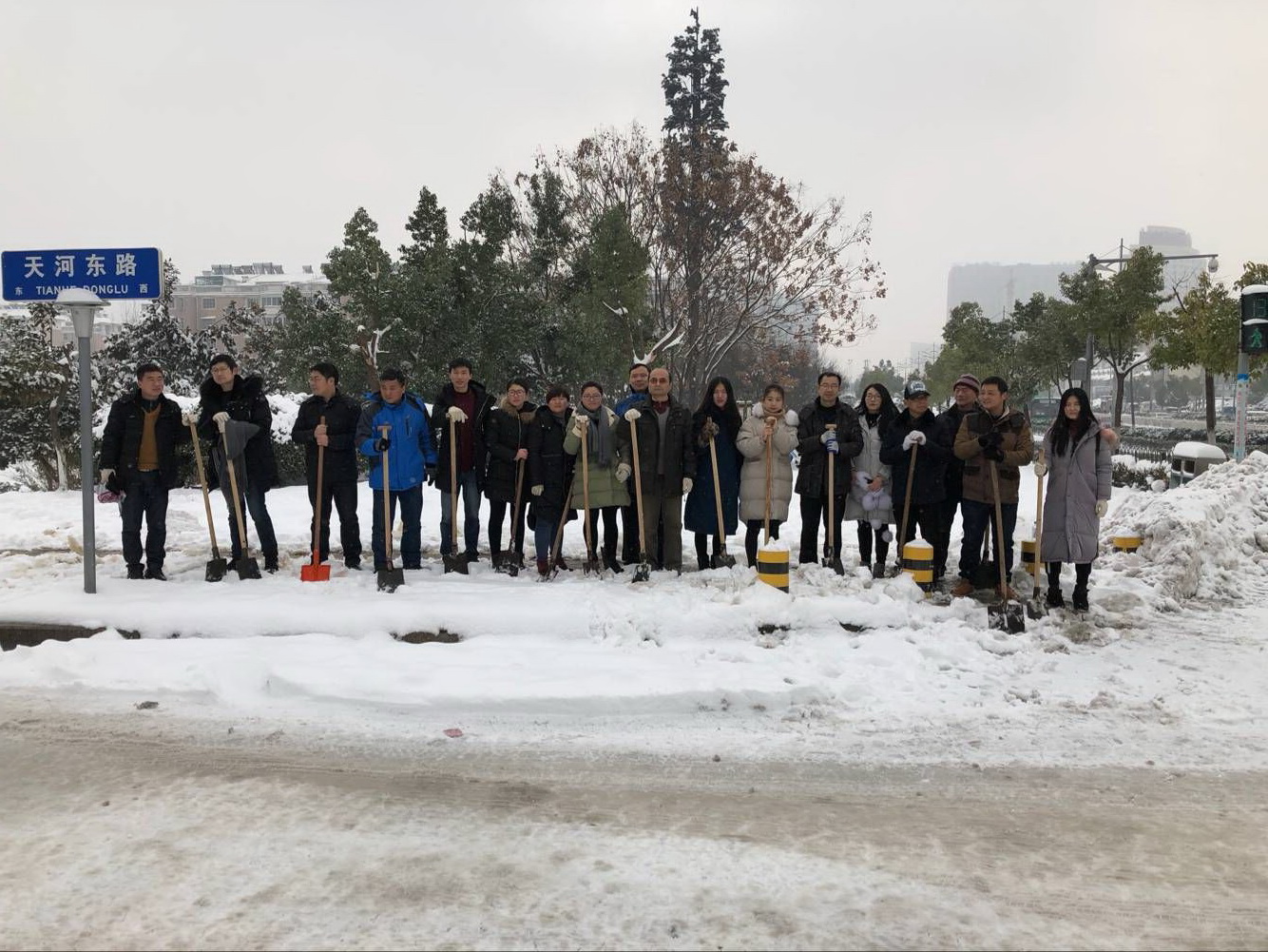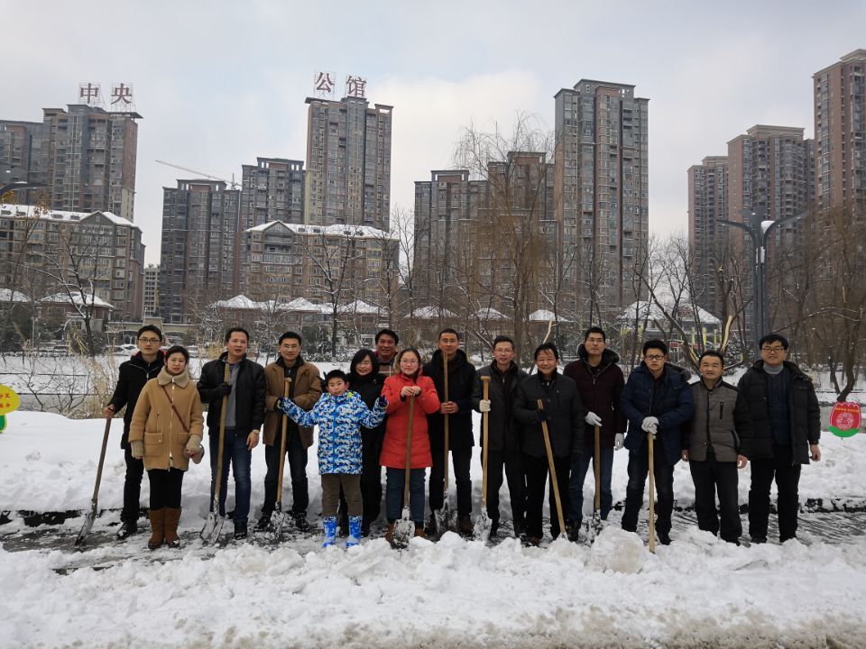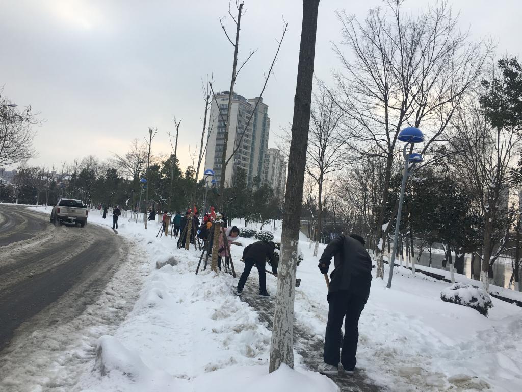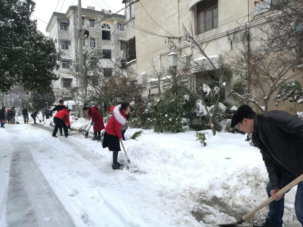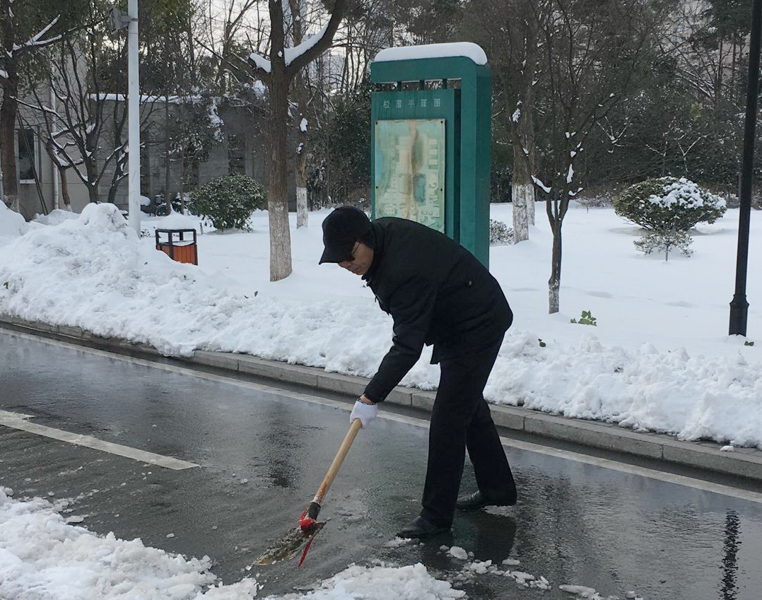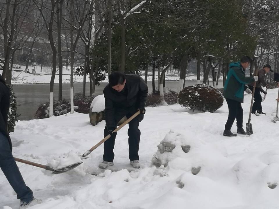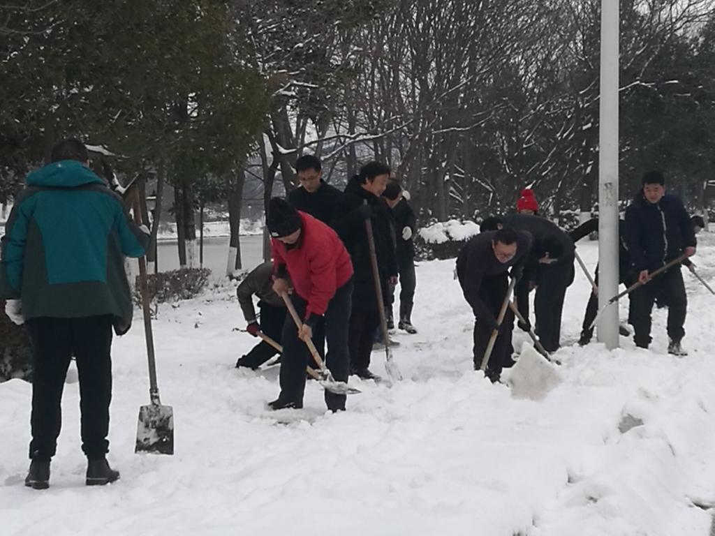 本网讯 2018新年伊始,魅力六安,瑞雪飞舞,国防内外,银装素裹,天公作美,美不胜收。为了方便群众生产生活,欣赏自然美景,根据学校党委统一部署,直属第二党支部迅速行动起来,1月28日一大早,二支部全体党员以饱满的政治热情和昂扬的劳动斗志,拿起铁锹和扫帚等“武器”,冒着大雪走出校门,来到天河东路进行铲雪扫雪,有的同志奋力铲,有的同志着力扫,特别是遇到覆路坚冰,先是自上而下纵向斩,再是俯身抽底横向铲,锹把干断了,锹口斩卷了,手套磨烂了……有同志不无感慨,啃硬骨头是艰难的,但啃下了又是无比快乐的!火热的劳动场面,引无数路人由衷点赞!为国防学院服务社会点赞!为共产党员先锋模范点赞!