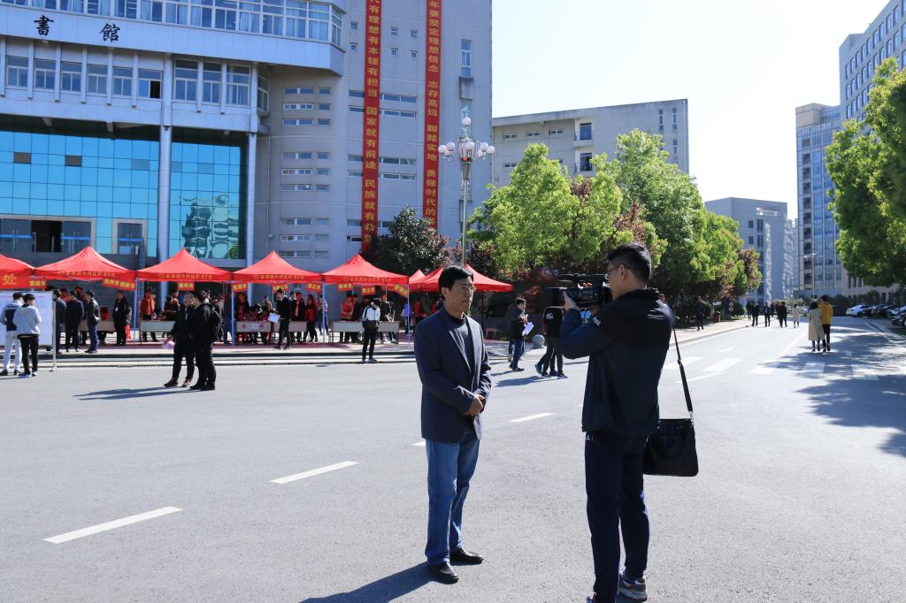 六安市电视台报道万象城官网分类考试并采访校党委委员、宣传部长袁旗