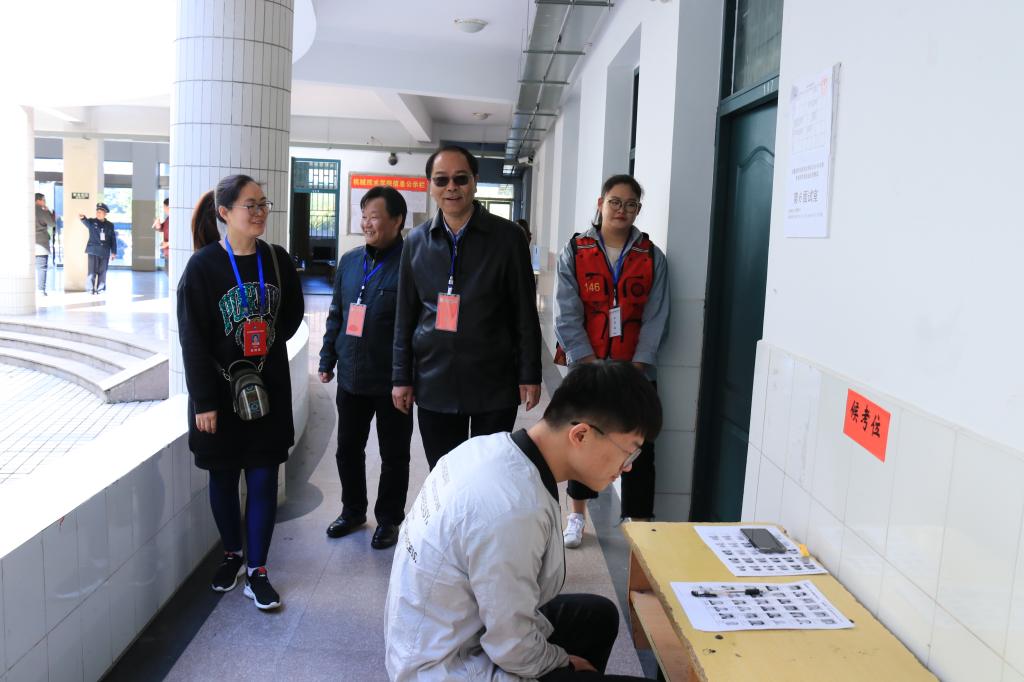 省教育厅巡考员(左)现场检查指导并肯定万象城官网考试组织工作