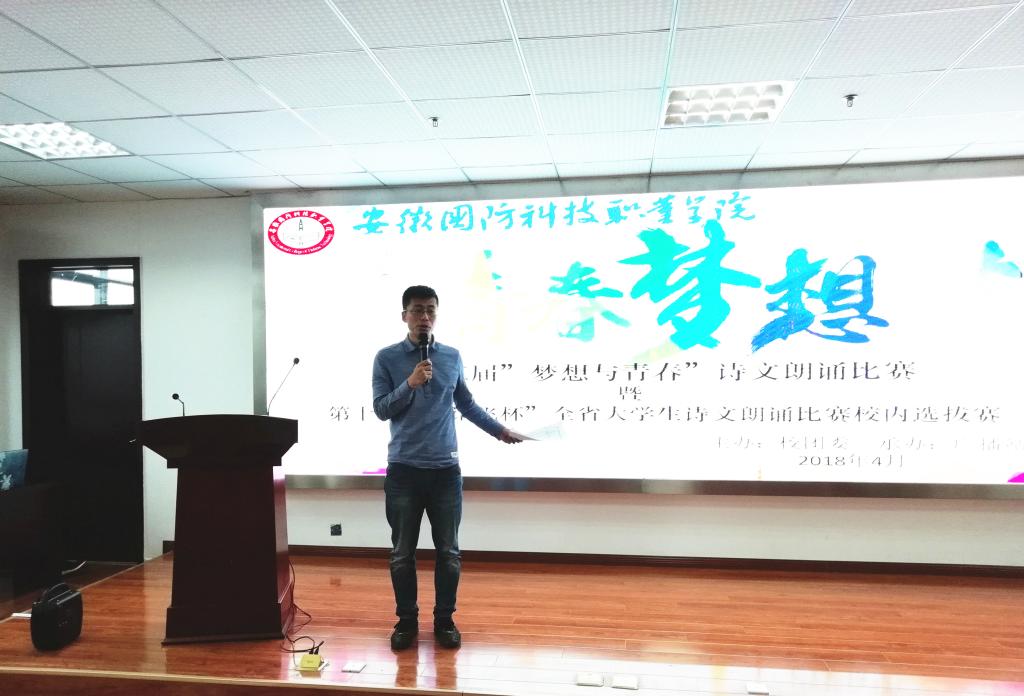 本次比赛特邀六安市广播电视台著名主持人、六安市演讲与朗诵学会秘书长吴声参与评审,他对比赛整体情况作了感受发言,对几处要点进行了示范朗读,并对所有选手从作品理解、情感触动、声音状态、主题选择四方面进行了一一点评,让同学们受到启发。