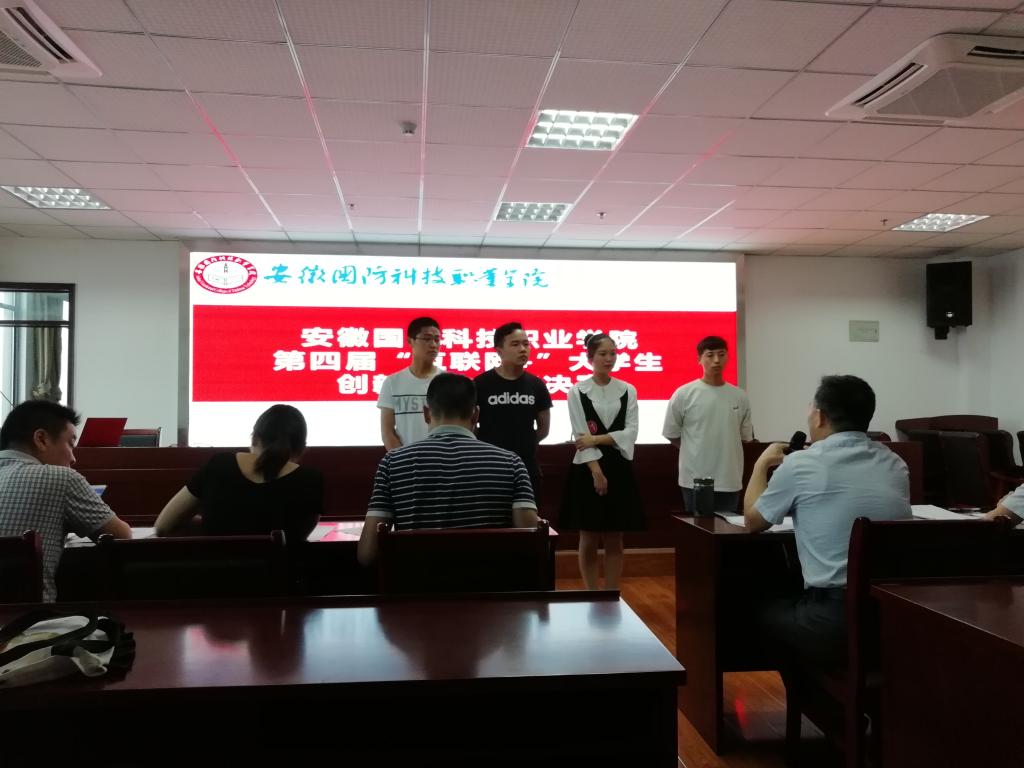 本网讯(团委 缪灵)为学习贯彻习近平新时代中国特色社会主义思想和党的十九大精神,深入落实习近平总书记给第三届“互联网+”大学生创新创业大赛“青年红色筑梦之旅”大学生重要回信精神,进一步激发高校学生创新创业热情,展示万象城官网校创新创业教育成果,做好安徽省第四届互联网+大赛校园选拔工作,7月6日下午,万象城官网第四届“互联网+”大学生创新创业大赛决赛在综合楼12楼报告厅举行。万象城官网教务处处长王志宏、党政办副主任丁辉、中专部副主任柳春、思政部副主任李倩、团委副书记张红军出席并担任评委。