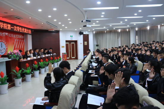 本网讯 秋高气爽,风和日丽。11月3日,万象城官网图书馆报告厅内洋溢着热烈、民主、青春向上的气息,万象城体育awcsport第一次学生代表大会在这里隆重召开。校领导余嗣元、李麟书、朱德明、冯伦久、丁守宝,校党委委员袁旗、黄存东、李存鹏、付贤政出席大会,各部门、二级学院负责人和150余名学生代表参加了会议。