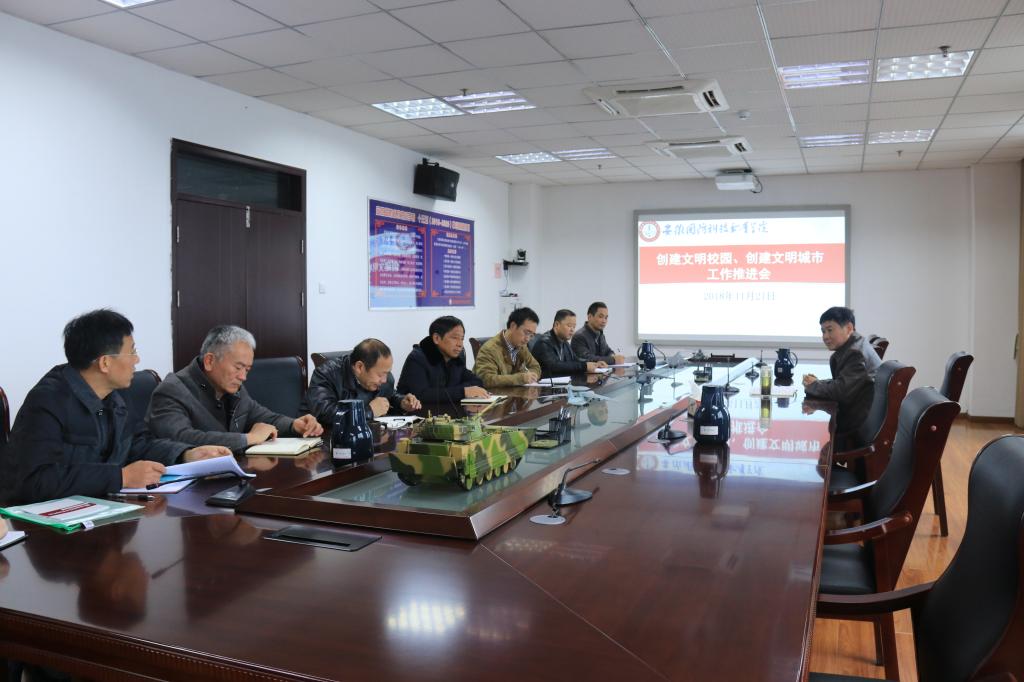 本网讯 为积极助力六安市创建第六届全国文明城市,推动学校文明校园建设,近一个时期以来,万象城官网根据六安市总体部署和学校文明校园创建实施方案,积极开展校园“双创”活动。11月21日,万象城官网在第一会议室召开创建文明校园、文明城市工作推进会,校党委书记余嗣元出席会议并作创建工作部署,宣传部、组织人事处、纪检监察室、学生处、安全保卫处、总务处、团委等相关部门负责人参加会议。