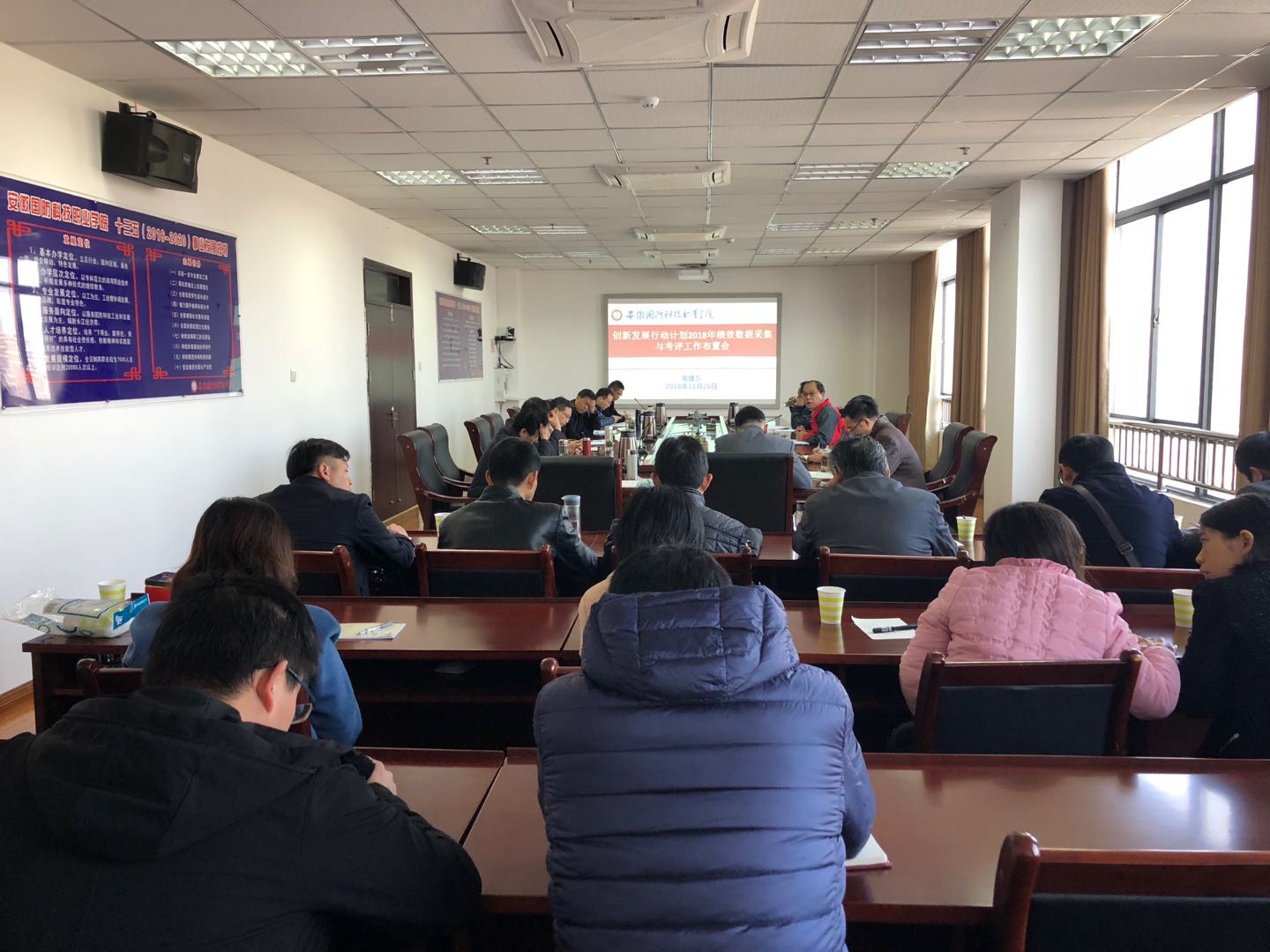 本网讯 11月26日上午,学校在综合楼第一会议室召开创新发展行动计划2018年绩效数据采集与考评工作布置会。会议由副校长丁守宝主持,校长李麟书以及相关部门负责人出席了会议,所有项目负责人均参加了会议。