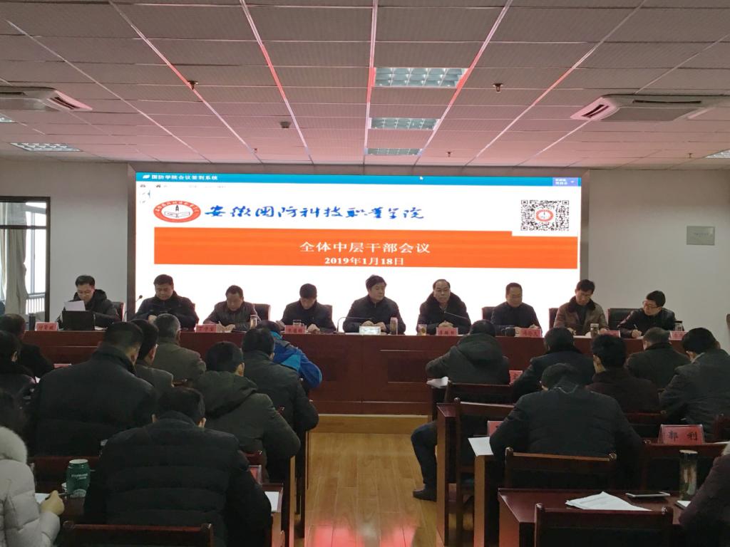 本网讯(党政办 陶常乐)1月18日上午,学校在综合楼12楼召开全体中层干部会议,会议由校长李麟书主持,校党委书记余嗣元出席会议并讲话,副校长冯伦久、丁守宝,党委委员袁旗、黄存东、李存鹏、付贤政出席会议,全体中层干部参加了会议。