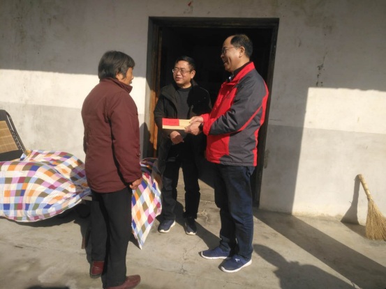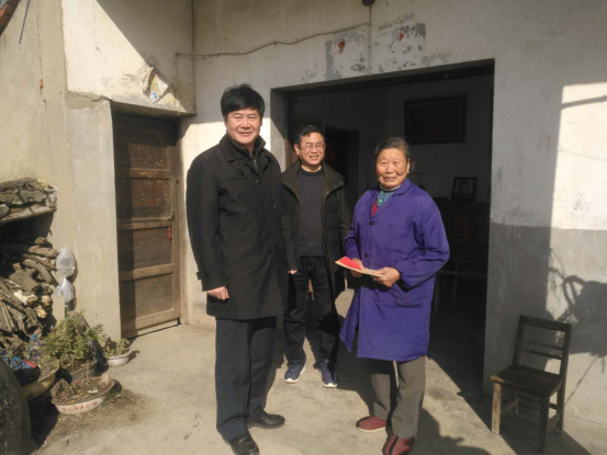本网讯(侯超众)1月22日上午,学校党委成员余嗣元、李麟书、朱德明、冯伦久、丁守宝、袁旗、黄存东、李存鹏、付贤政一行9人,赴学校帮扶村——六安市三十铺镇太平村调研扶贫工作,走访慰问贫困户。