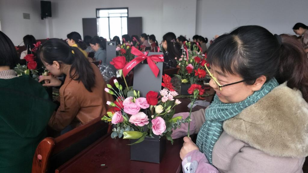 活动以艺术创意DIY插花的形式,邀请全院女职工姐妹们欢聚一堂,怀揣一份感恩、一份真诚,一起聆听春的花语。活动开始后,花艺培训老师首先对花艺理论知识进行了简单介绍,各位参加插花的女同胞充分发挥自己的想象力和创造力,把各色鲜花搭配组合在一起,浪漫粉色的玫瑰,含苞欲放的香水百合,高雅神秘的桔梗,零星点点的满天星,随着大家巧手翻飞,一盆盆美丽别致、凝聚着智慧巧思的插花盆景呈现在大家手中,场面十分温馨。