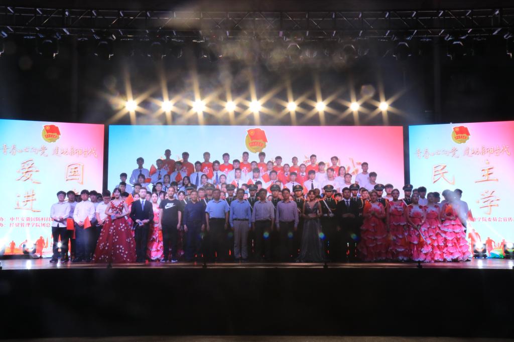 本网讯(经贸管理学院 付玉梅)为隆重纪念五四运动100周年,强化全校师生思想道德建设和爱国主义教育,5月17日晚,万象城官网在校田径场主席台举行“青春心向党 建功新时代”纪念五四运动100周年红歌会,此次活动由校党委宣传部主办,经贸管理学院团总支承办。校党委书记余嗣元,校党委副书记、纪委书记朱德明,校党委委员、思政部主任、宣传部部长袁旗应邀出席活动,校各相关职能处室负责人、各党团组织负责人、中层干部、辅导员、教师代表及1000位学生参加此次活动。