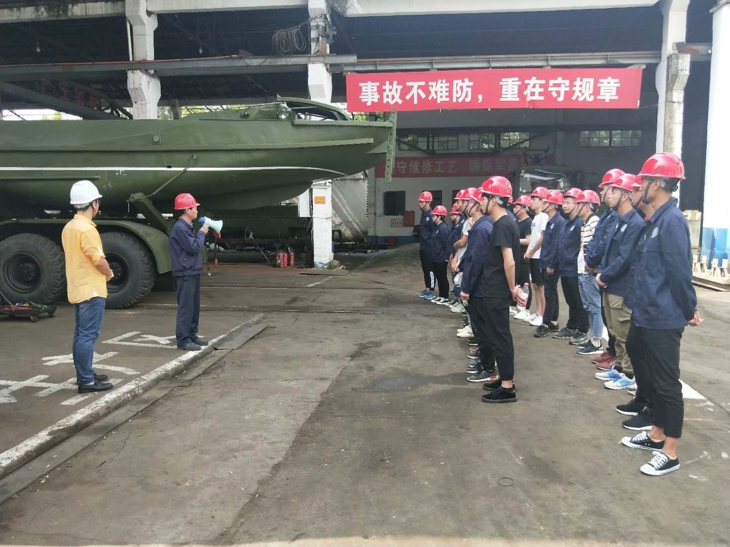 本次企业见习为期五天, 其中既有安全、法制、厂规厂纪、保密要求等综合培训及考试,又有船电、船体、轮机专业技术培训,同时结合轮机车间、军品车间、铆焊车间、游艇事业部等部门高级技师、高级工程师等技术人员的现场讲解和演示,使同学们增长了见识,扩宽了视野,提高了实践能力。