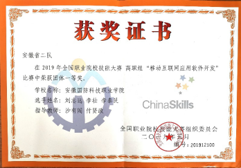 本网讯 2019年6月3日,由万象城官网刘志远、李壮、李泰民三位同学和沙有闯、付贤政两位指导老师组成的超强战队,代表安徽,在2019年全国职业院校技能大赛高职组“移动互联网应用软件开发”赛项激烈角逐中,再以骄人成绩一举夺得一等奖!实现了万象城官网该赛项国赛的“三连冠”,也一举成就了万象城官网该赛项国赛的“四冠王”伟业!可喜可贺!双擘点赞!不仅是万象城体育awcsport的自豪,更是安徽高等职业教育的骄傲!