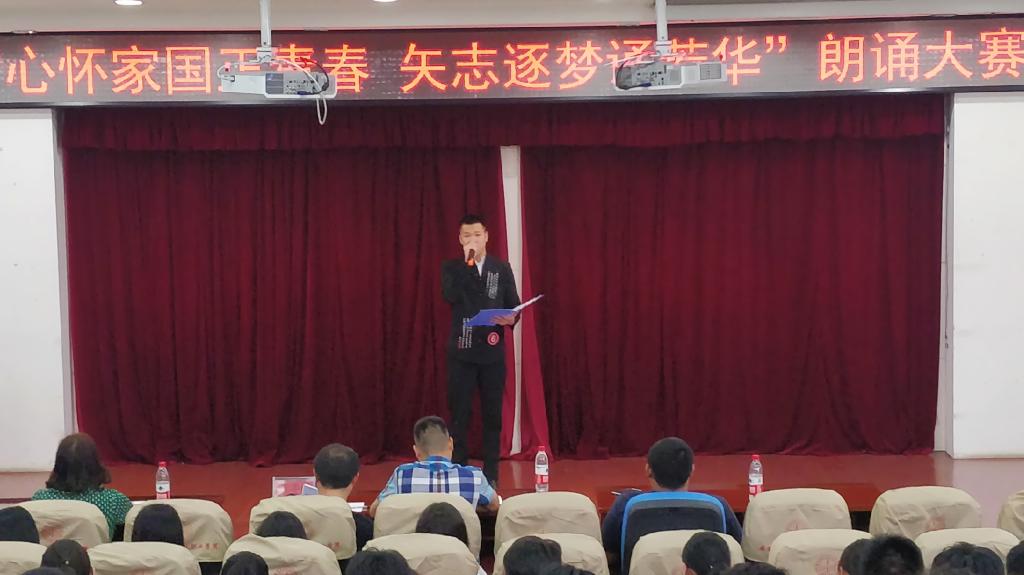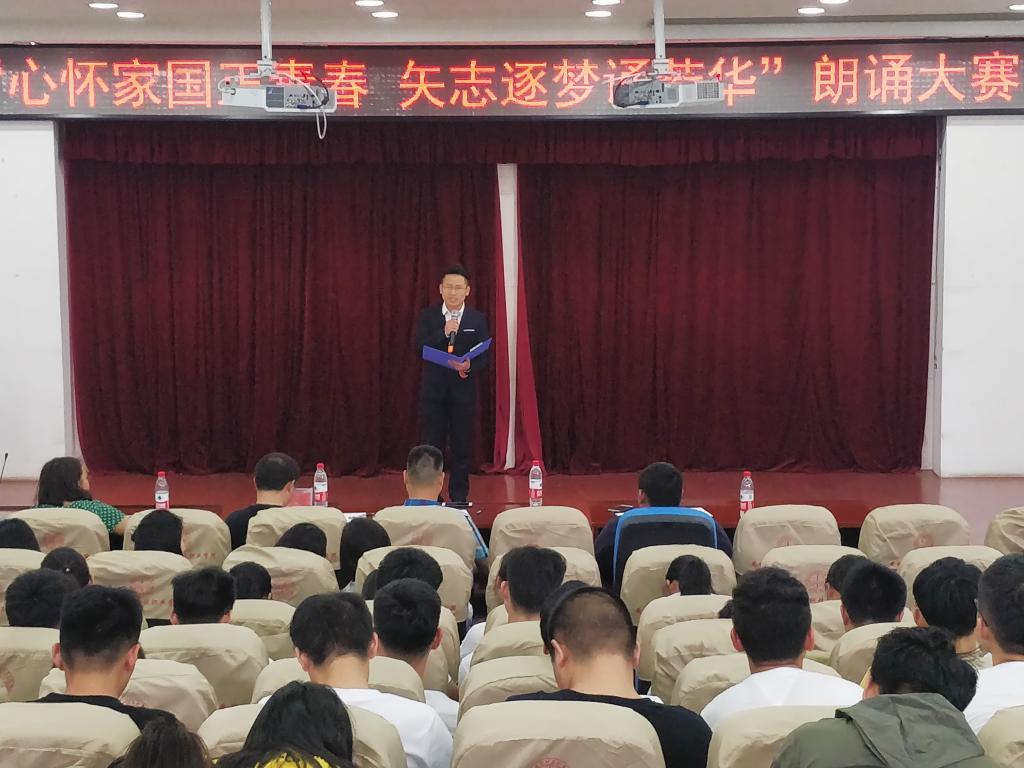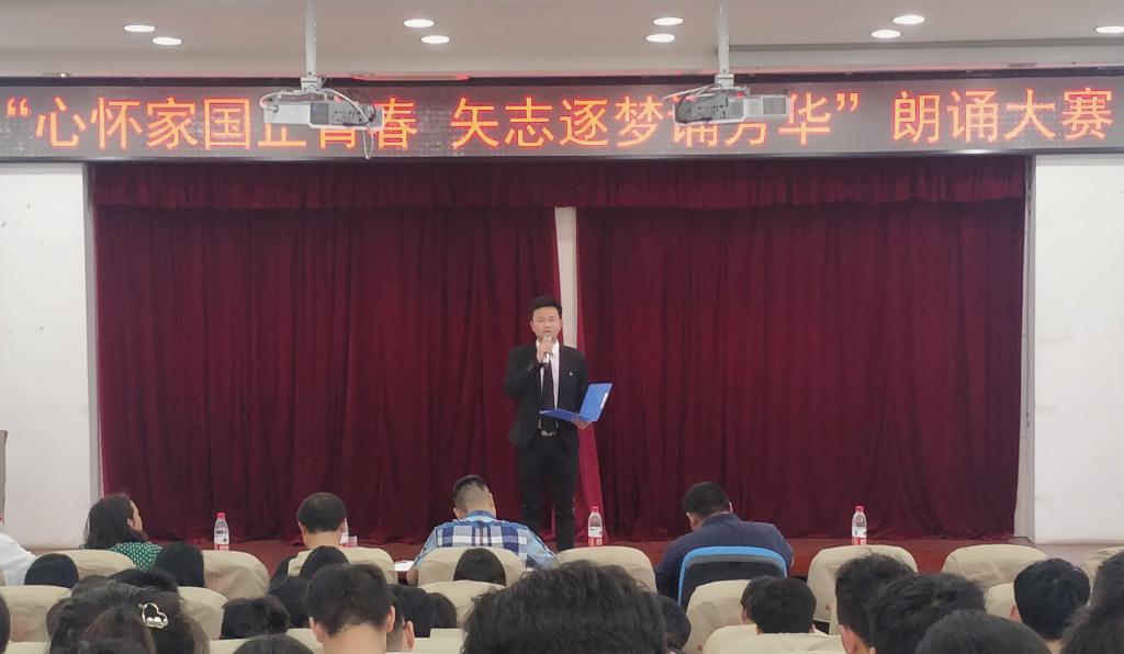 本网讯(团委 缪灵)6月5日下午,由校普通话测试站、校团委主办的“心怀家国正青春 矢志逐梦诵芳华”朗诵赛暨第二届安徽省大学生国家通用语言文字应用能力大赛校内选拔赛在报告厅顺利举行。团委副书记张红军、经贸管理学院副院长杨学分、校素质扩展中心主任雷雨、经贸管理学院宋杨老师、黄伟伟老师出席比赛,现场150余名同学一同观看了比赛。
