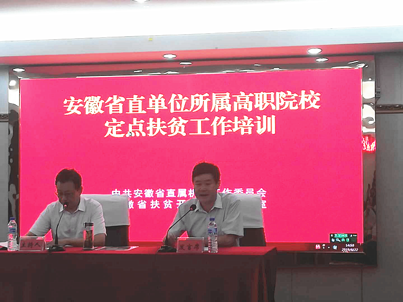 省直单位所属高职院校分管扶贫负责人、驻村工作队队长参加,会议由安徽省职业与成人教育学会会长李兴旺主持,省直机关工委副书记朱宗庄、省扶贫办副主任阳传炉参加了会议并讲话。