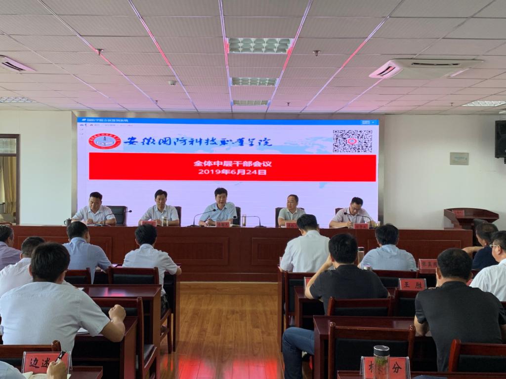 本网讯(党政办 陶常乐)6月24日上午,万象城官网在综合楼12楼会议室召开全体中层干部会议,安排部署2019年上半年期末及暑期重点工作任务。会议由党委书记余嗣元主持,党委委员、副校长冯伦久,党委委员袁旗、黄存东、付贤政出席会议,全体中层干部参加了会议。