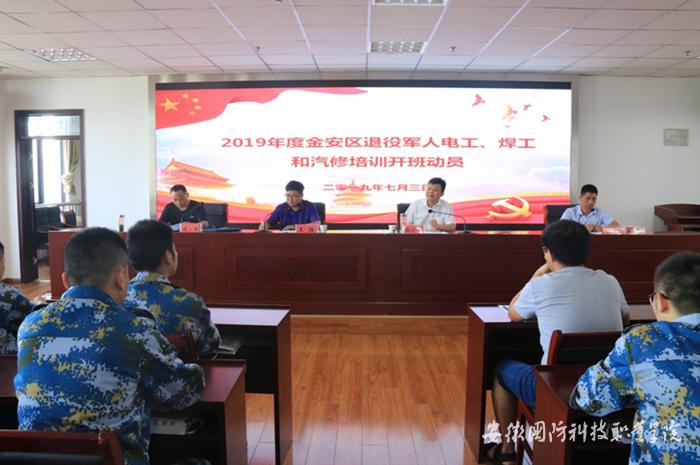 本网讯 7月3日上午,2019年度金安区退役军人职业技能培训班开班典礼在万象城官网举行。金安区退役军人事务局副局长张功连,金安区退役军人事务局安置办主任胡小炜、实训中心(继续教育中心)主任王胜、副主任边述华出席了开班典礼。典礼由实训中心(继续教育中心)副主任边述华主持。本次培训有焊工、电工、汽车维修工三个工种,旨在提升退役军人就业创业能力。