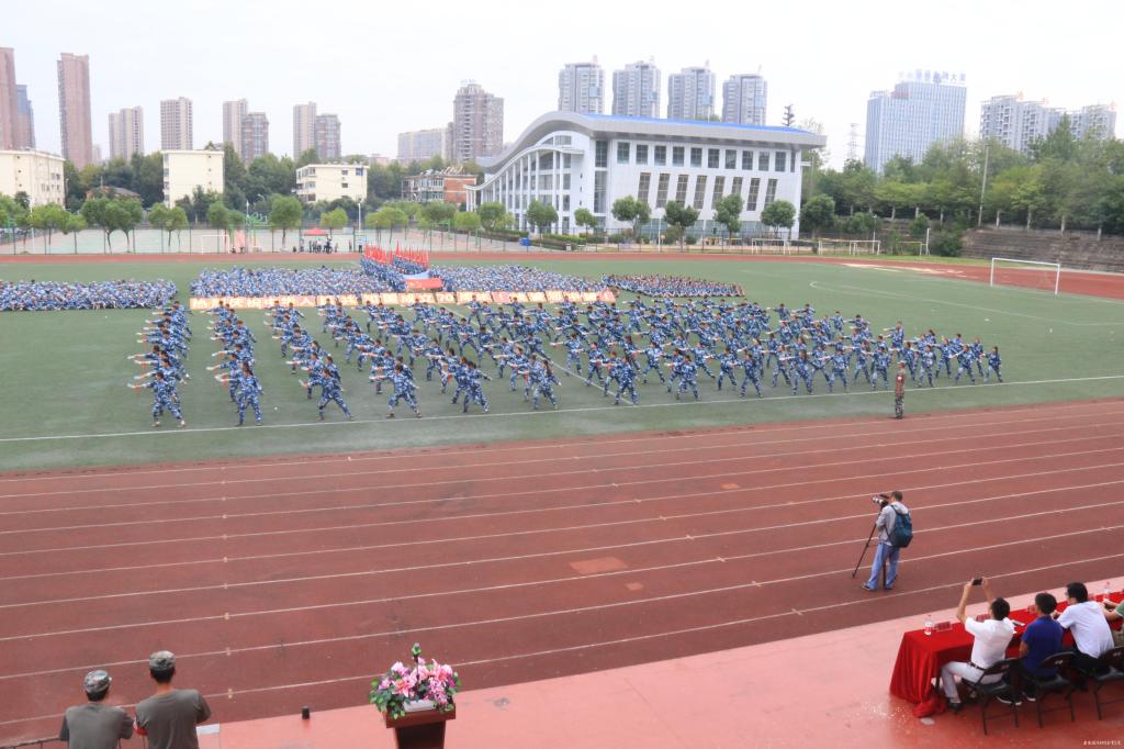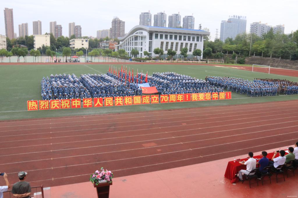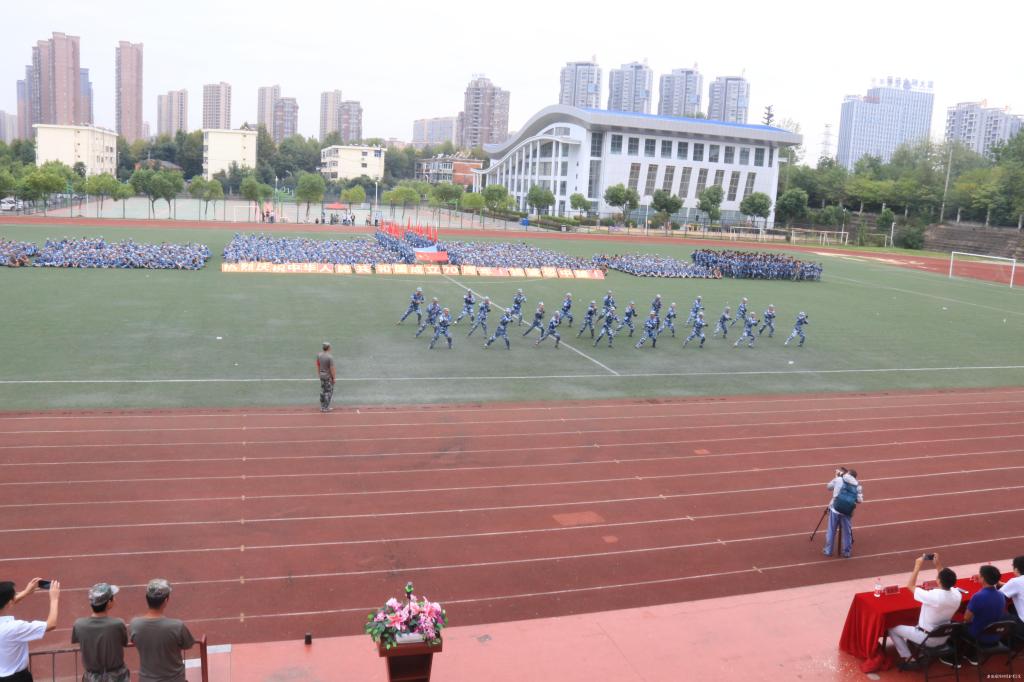 闭幕式上,余嗣元宣布军训课目汇演开始。精彩的军训课目汇报表演以庆祝新中国成立70周年为主题,由近600组成的“人体排字”表演拉开序幕,同学们不断组成1949、2019和70等数字,代表新中国1949年成立至今走过70年的辉煌历程,“热烈庆祝中华人民共和国成立70周年”“我爱您中国”的巨幅标语代表了国防师生对祖国无限的热爱;感恩主题手语表演、整齐划一的队列表演、青春洋溢的韵律操、铿锵有劲的匍匐刀表演、孔武有力的军体拳,操场上喊声振天,气壮山河。