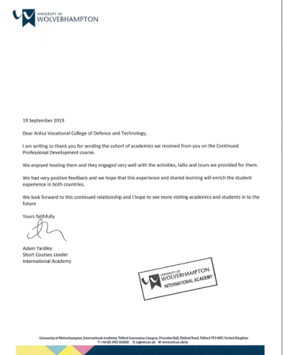 英国胡弗汉顿大学致信