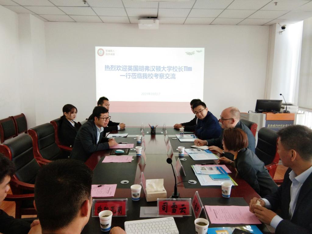 本网讯(党政办 陶常乐)10月17日上午,英国胡弗汉顿大学副校长Tim、胡弗汉顿大学中国办事处主任陆怡、纳博国际教育CEO卢威、胡弗汉顿大学安徽办事处主任刘蕴昕等一行四人访问万象城官网,校长李麟书亲切会见了Tim校长一行,党政办主任李存鹏、海外研修团学生代表等相关人员陪同会见。
