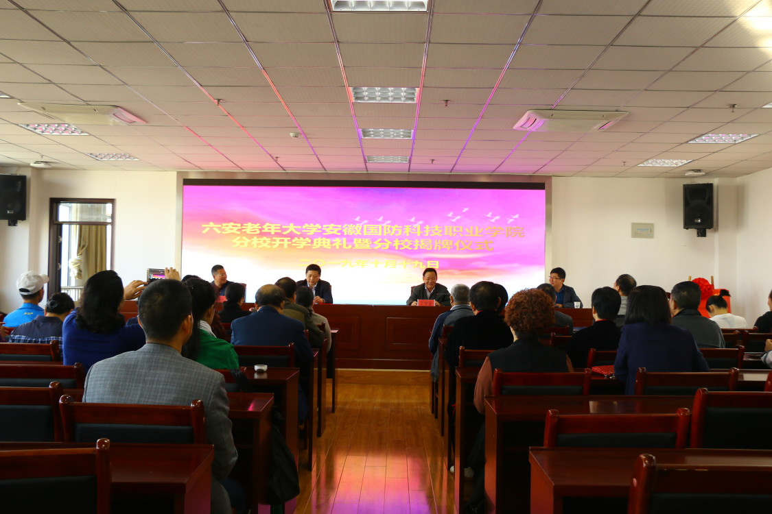 本网讯 10月19日上午,六安老年大学万象城体育awcsport分校开学典礼暨分校揭牌仪式在万象城官网举行。万象城体育awcsport党委委员、副校长丁守宝,六安老年大学副校长周培发,万象城体育awcsport继续教育中心主任王胜,六安市老年大学教务处主任周兆玉以及分校所有教师、学员出席了开学典礼。