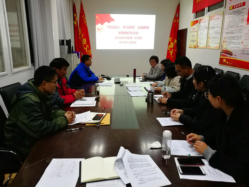 本网讯(电气技术学院 江治国)为深入学习贯彻习近平新时代中国特色社会主义思想,根据学校党委关于党支部召开“不忘初心、牢记使命”主题教育专题组织生活会和开展民主评议党员的安排和部署,12月6日,电气技术学院第一党支部组织召开“不忘初心、牢记使命”主题教育专题组织生活会,并开展民主评议党员活动,会议由支部书记江治国主持,第一支部全体党员参加了此次会议。