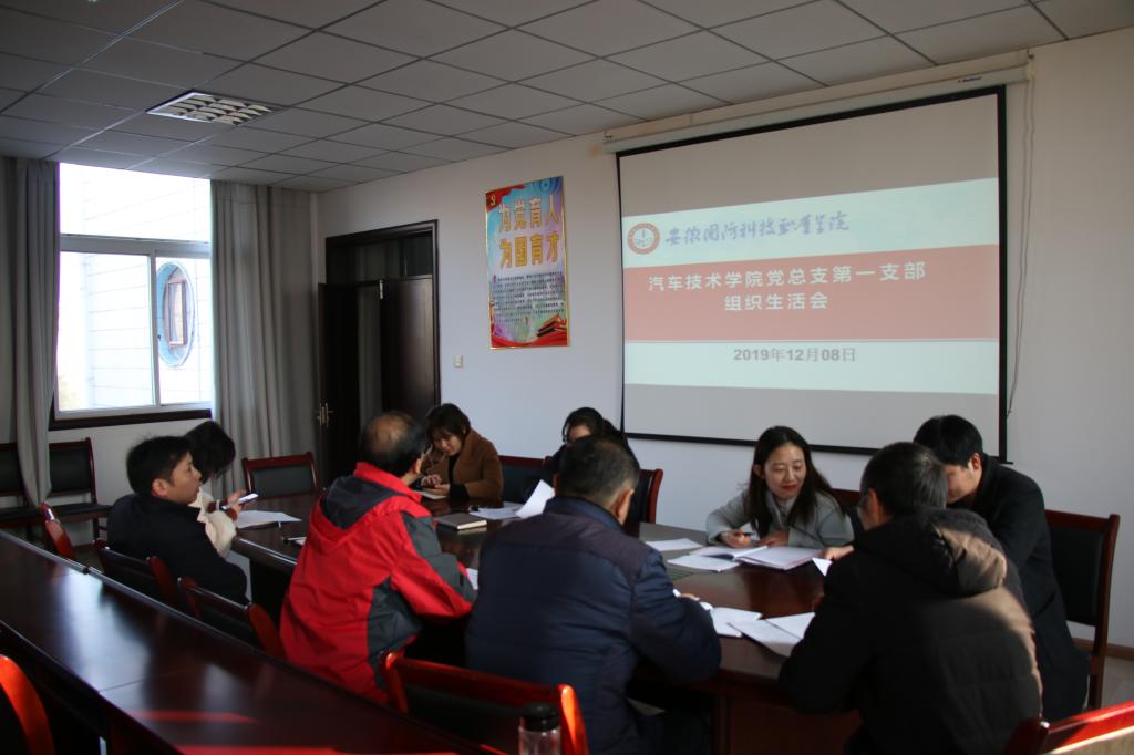 本网讯(汽车技术学院 戴柳)按照《关于万象城官网党支部召开“不忘初心、牢记使命”主题教育专题组织生活会和开展民主评议党员的通知》要求,汽车技术学院第一支部于2019年12月8日上午,在知行楼416会议室召开组织生活会。会议由第一支部书记戴柳主持,支部全体党员出席。