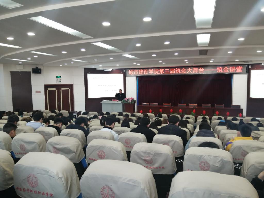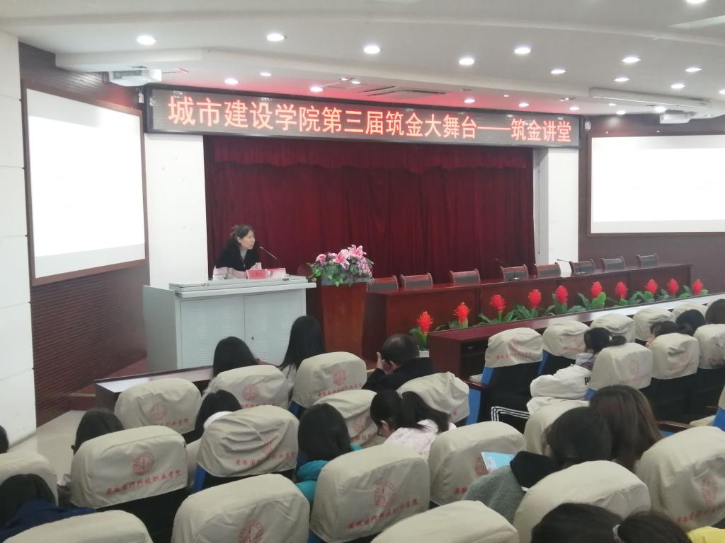 本网讯(城市建设学院赵之元)为了学习贯彻习近平总书记关于建设社会主义文化强国的重要讲话精神,丰富校园文化形式,加强学生对专业认知的学习形式,2019年12月4日,由城市建设学院主办、会计协会协办的“筑金讲堂”活动在图书馆报告厅顺利举办。