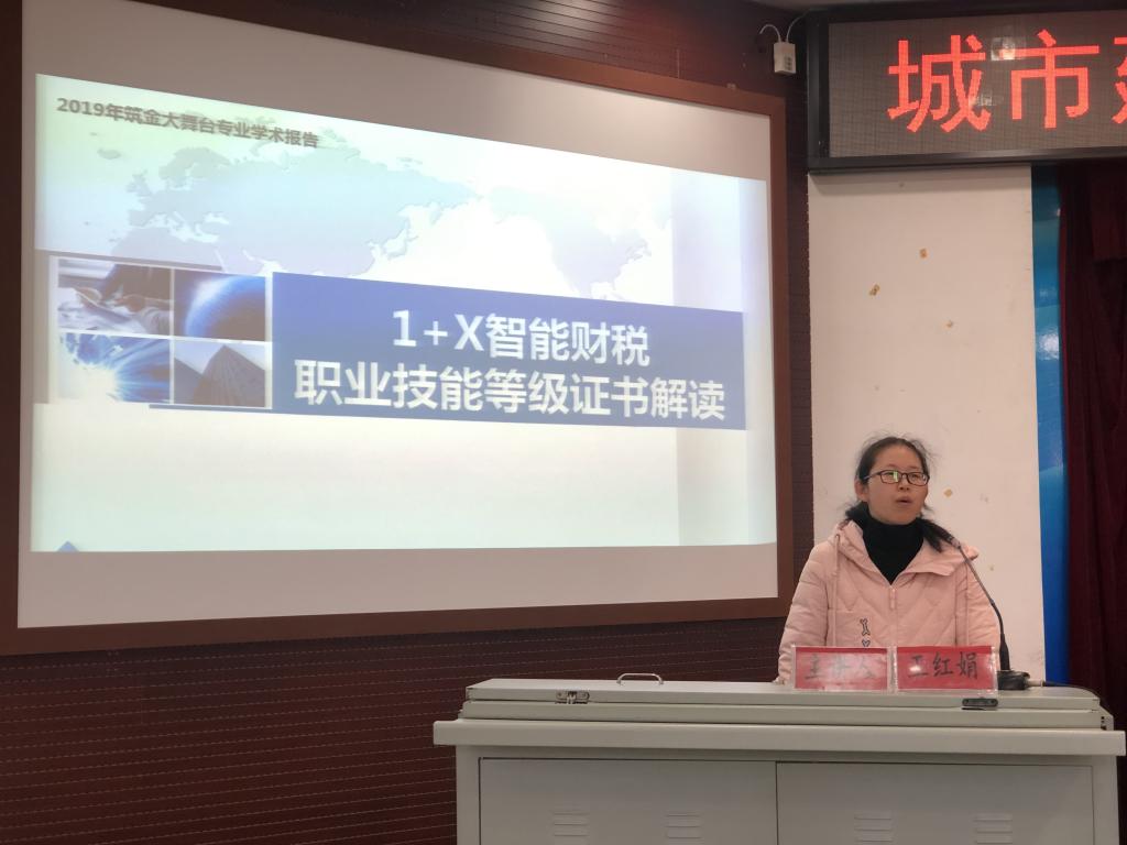 本次“筑金讲堂”会计分会场主要以会计诚信、职业选择、“1+X”智能财税等级证书解读为主题,从职业能力、职业素养和就业选择等方面为会计专业学生上了一堂生动的课程。