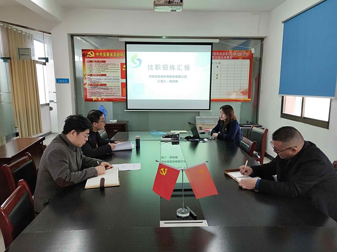 本网讯(经贸管理学院 杨学分)12月16日上午,经贸管理学院院长杨力、副院长杨学分一行赴安徽省高迪环保股份有限公司看望在企脱产挂职锻炼的陆会娥老师,并与高迪环保公司副总经理陈传明进行座谈交流。