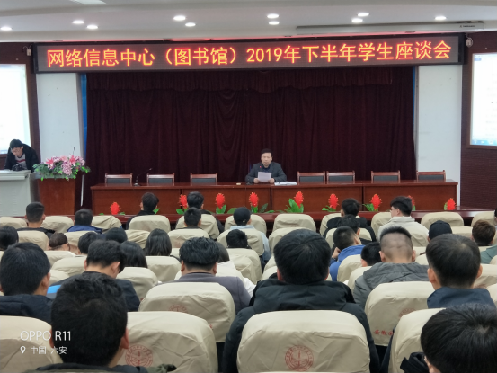 本网讯(图书馆 尤朝莉)为进一步加强网络信息中心(图书馆)与师生之间的沟通与交流,客观全面地了解图书服务、网络服务、电教与一卡通服务的详细情况,以提高网络信息中心(图书馆)的服务质量,2019年12月27日下午,网络信息中心(图书馆)在图书馆报告厅召开了学生座谈会。会议由网络信息中心主任、图书馆馆长李中永主持,图书馆与网络信息部分职工和90多名学生代表参加了本次会议。