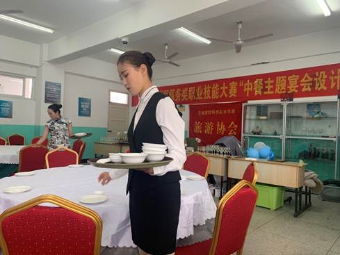 “中餐主题宴会设计”赛项是由旅游管理教研室和旅游协会共同承担大赛的筹备与赛务工作,整个过程组织严谨、流畅,既展示了酒店学子的专业风采,也培养了学生的职业素养,同时也为参加2020年安徽省职业院校技能大赛奠定了基础。