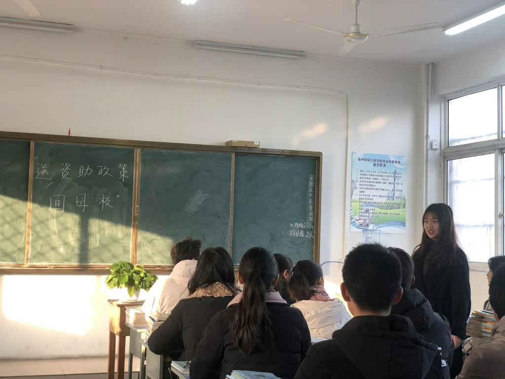 本网讯(经贸管理学院 许凤麟)12月27日上午,经贸管理学院资助宣传大使、2018-2019学年国家奖学金获得者李恬恬同学回到母校—淮南市第三中学开展寒假“送政策回母校”活动。